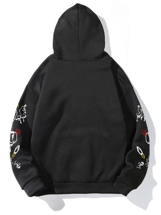 Fifth Avenue Printed Kangaroo Hoodie MIFT284 - Black