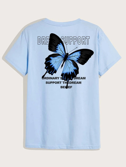 Fifth Avenue Front Back Butterfly Printed MIFT172 T-Shirt - Light Blue
