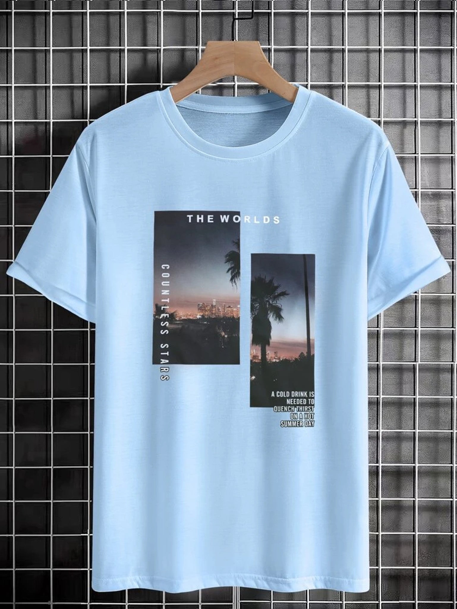 Fifth Avenue Alien Text Scene Printed MIFT144 T-Shirt - Light Blue