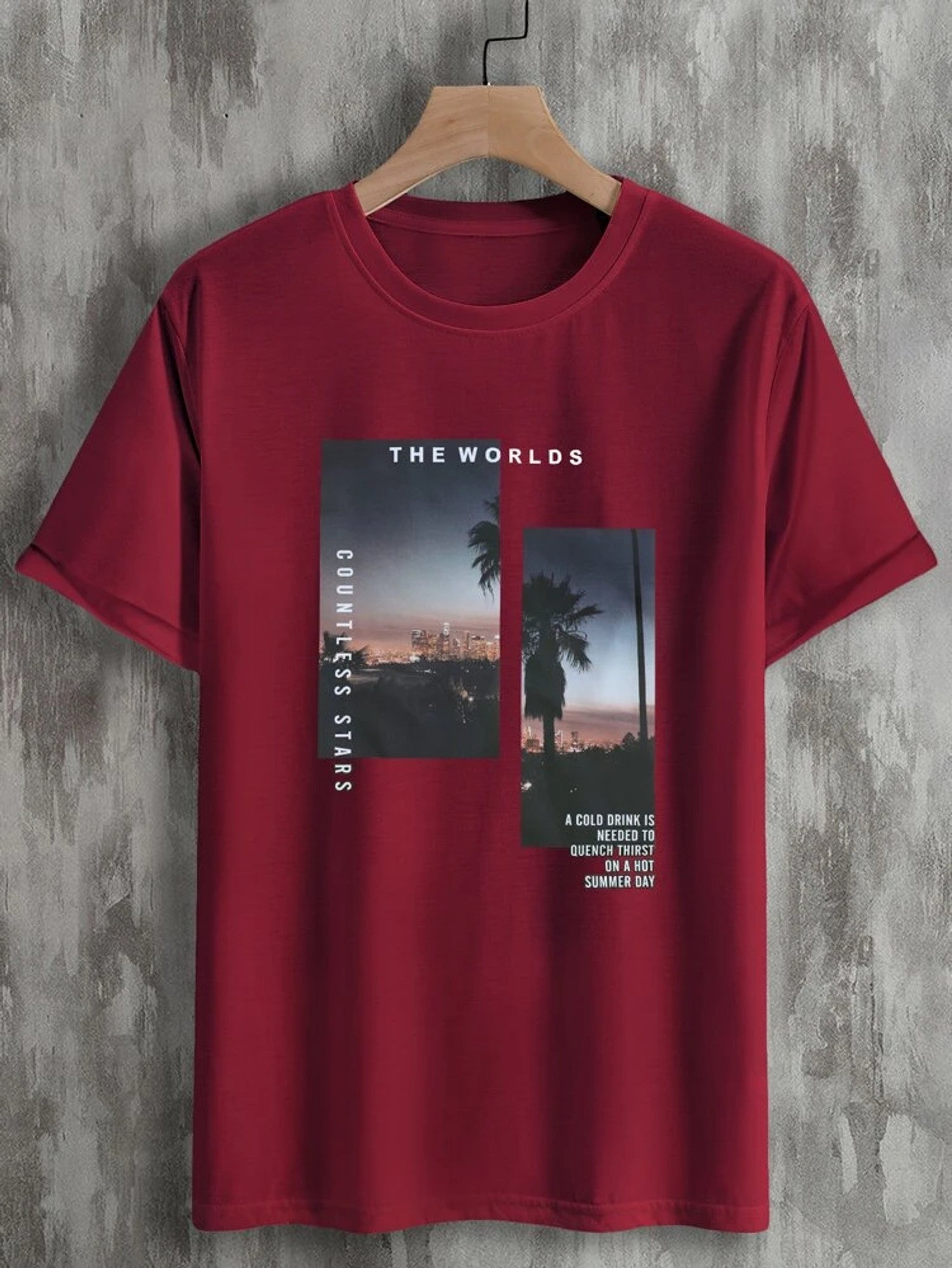 Fifth Avenue Alien Text Scene Printed MIFT144 T-Shirt - Maroon