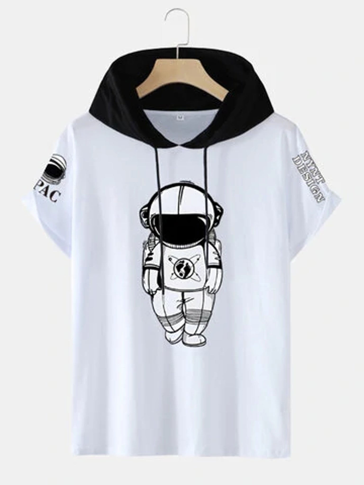 Fifth Avenue Astronaut Print MIFT448 Hooded ROKA T-Shirt - White Black