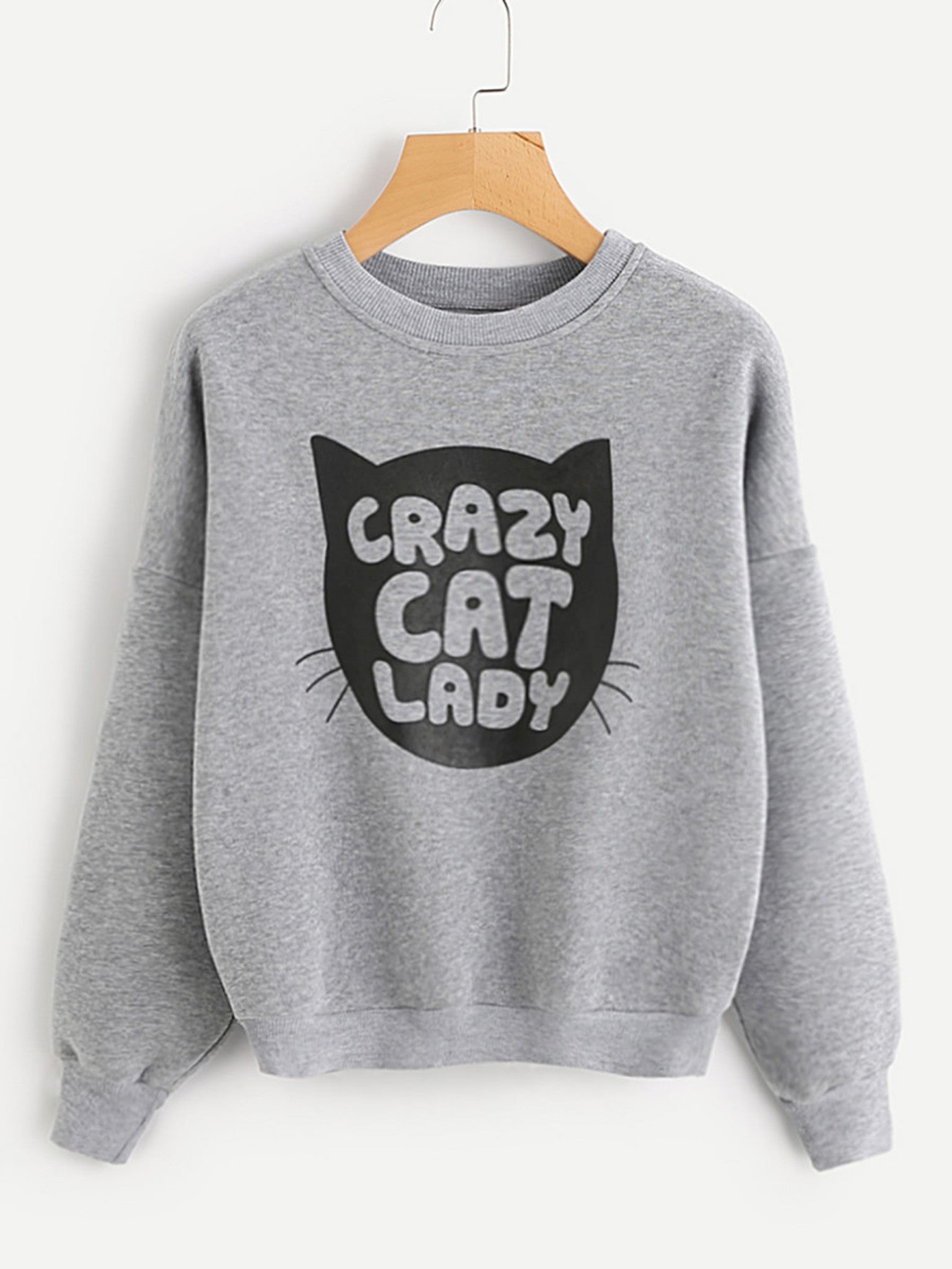 Fifth Avenue Crazy Cat Lady Printed Sweatshirt - Heather Grey