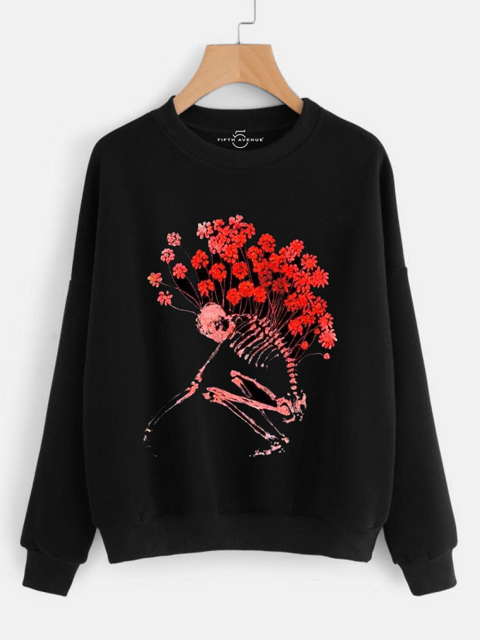 Fifth Avenue DIFT204 Floral Person Vector Printed Sweatshirt - Black
