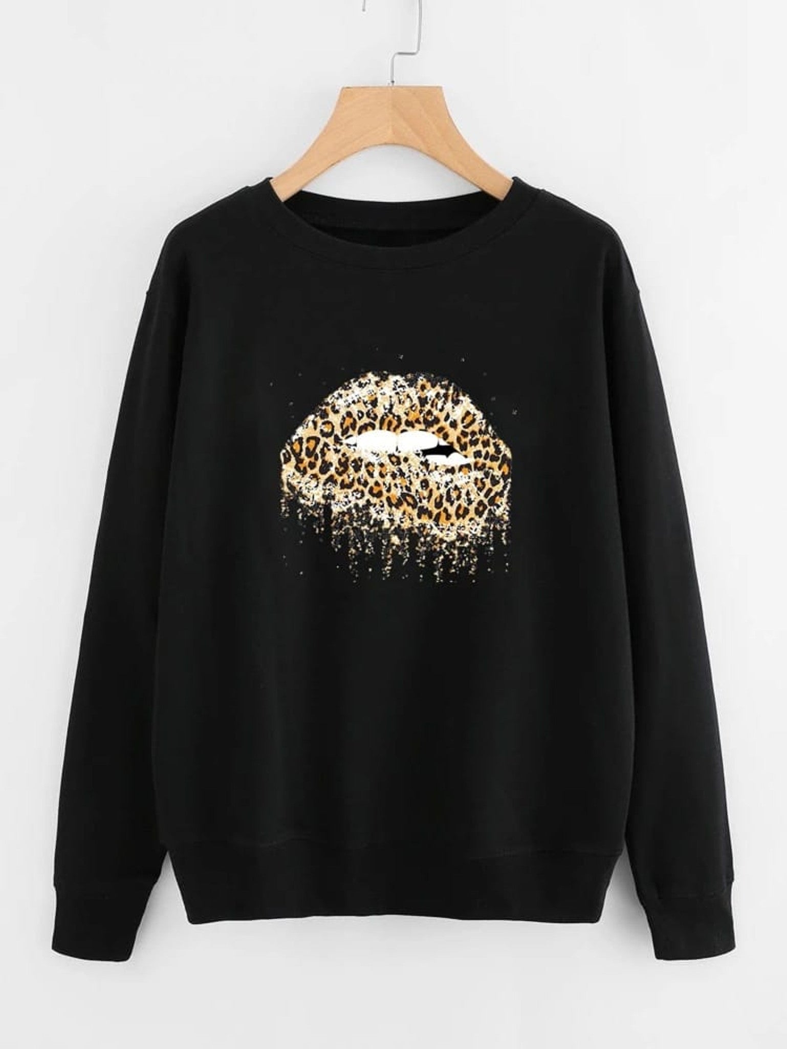 Fifth Avenue DIFT233 Leopard Lips Printed Sweatshirt - Black