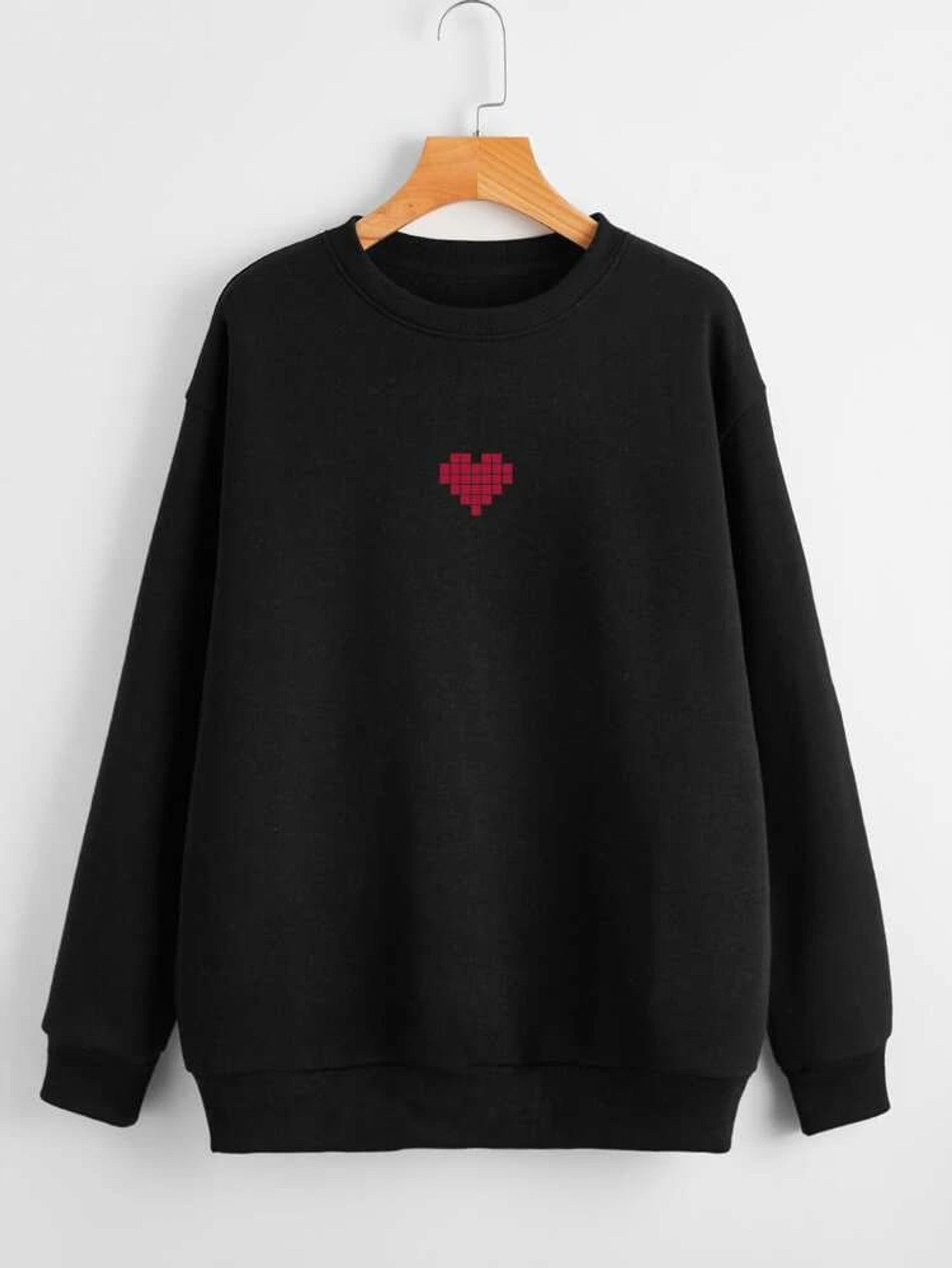 Fifth Avenue DIFT237 Heart Printed Sweatshirt - Black