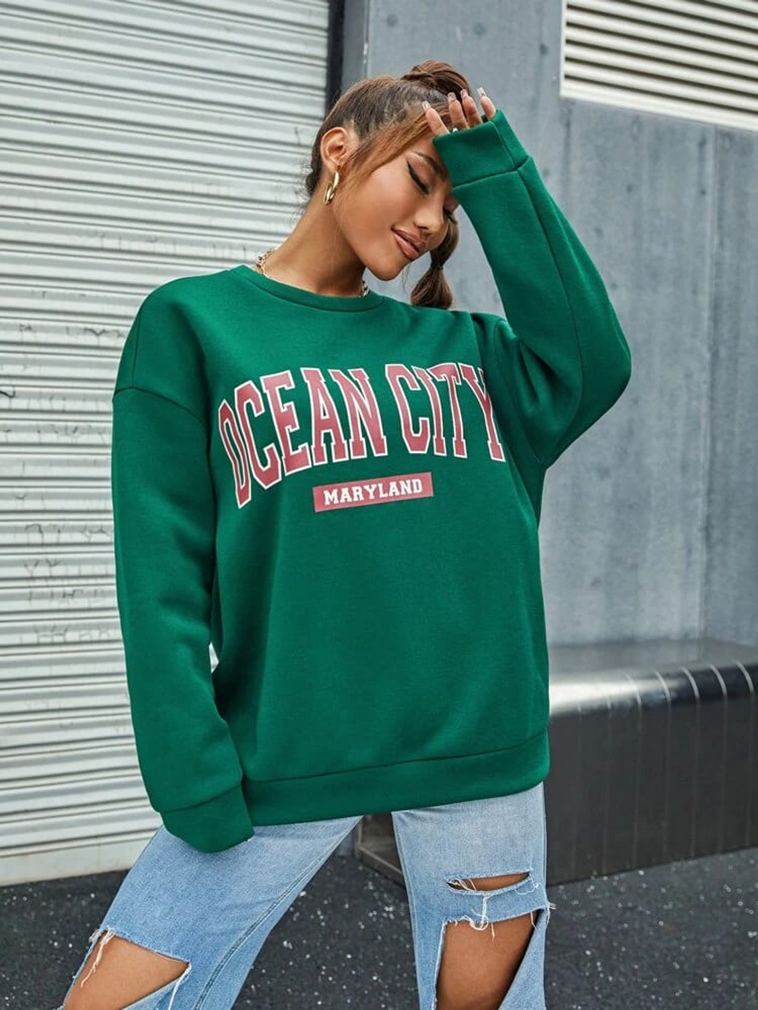 Fifth Avenue DIFT331 Ocean City Printed Sweatshirt - Green