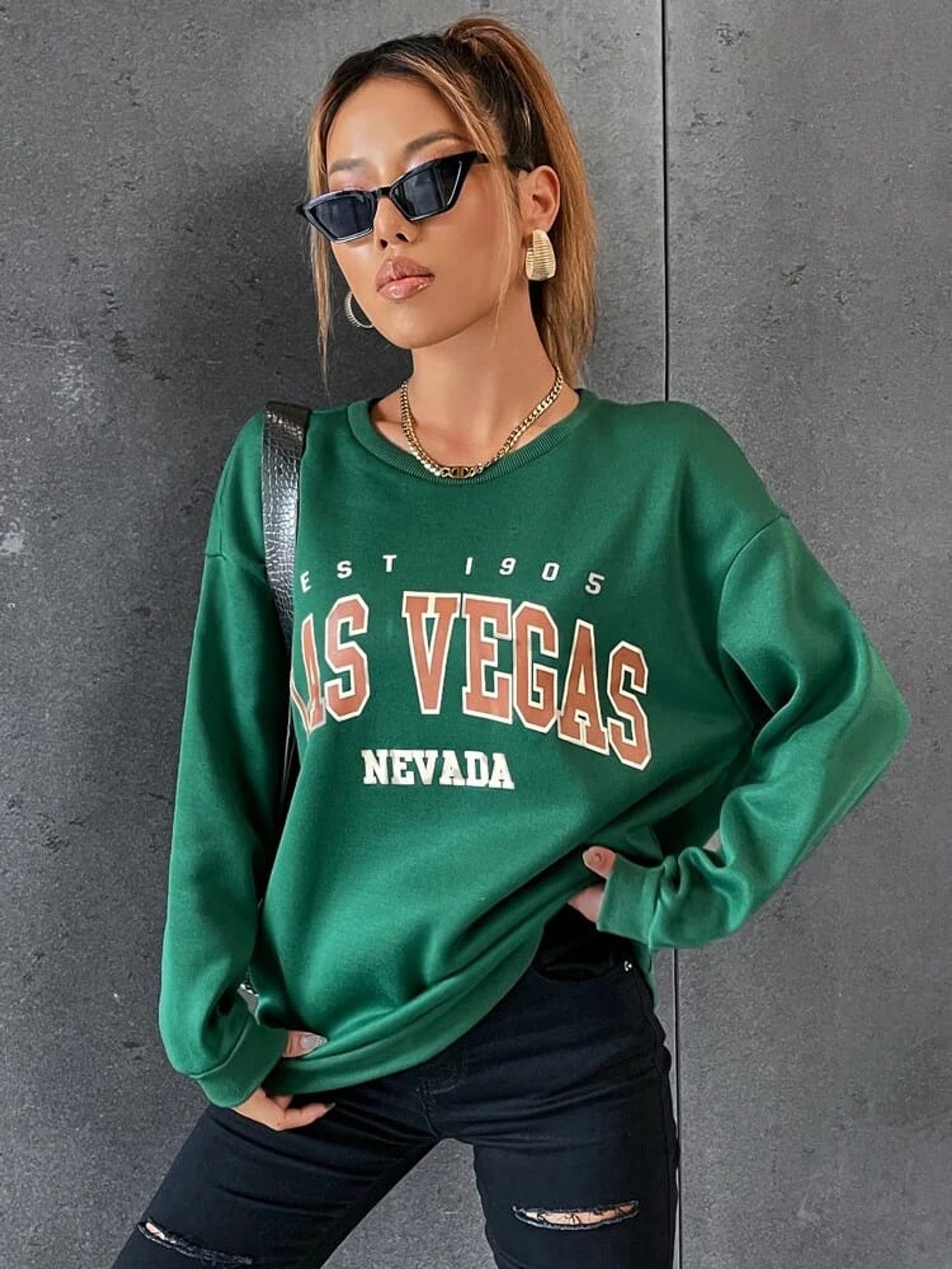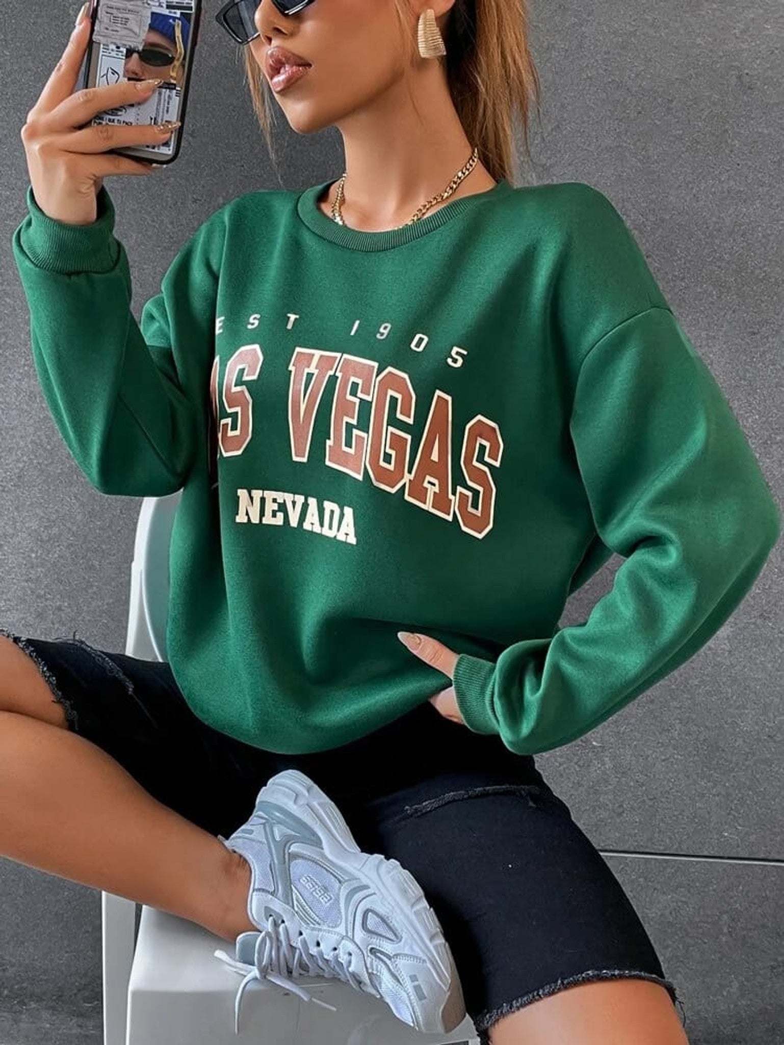 Fifth Avenue DIFT348 Las Vegas Printed Sweatshirt - Green