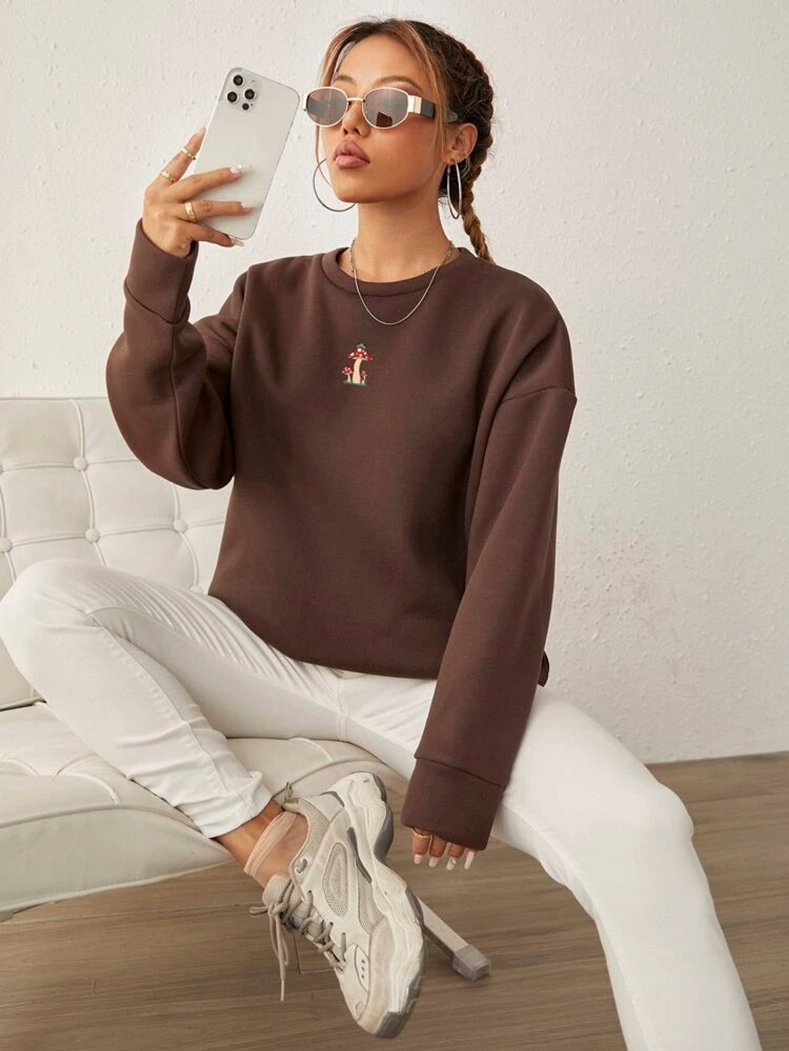 Fifth Avenue DIFT371 Mushroom Printed Sweatshirt - Brown