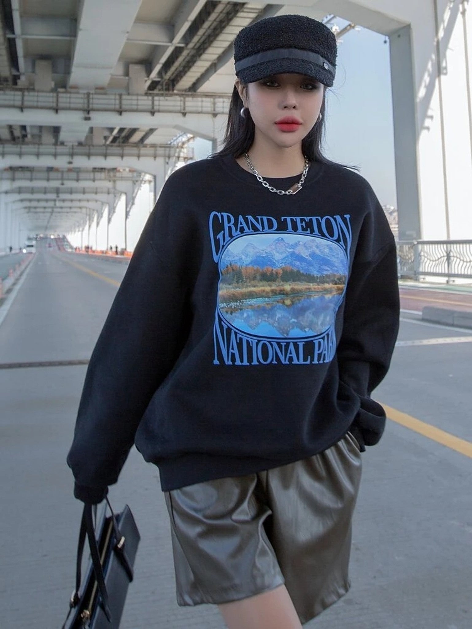 Fifth Avenue DIFT378 Grand Teton Printed Sweatshirt - Black