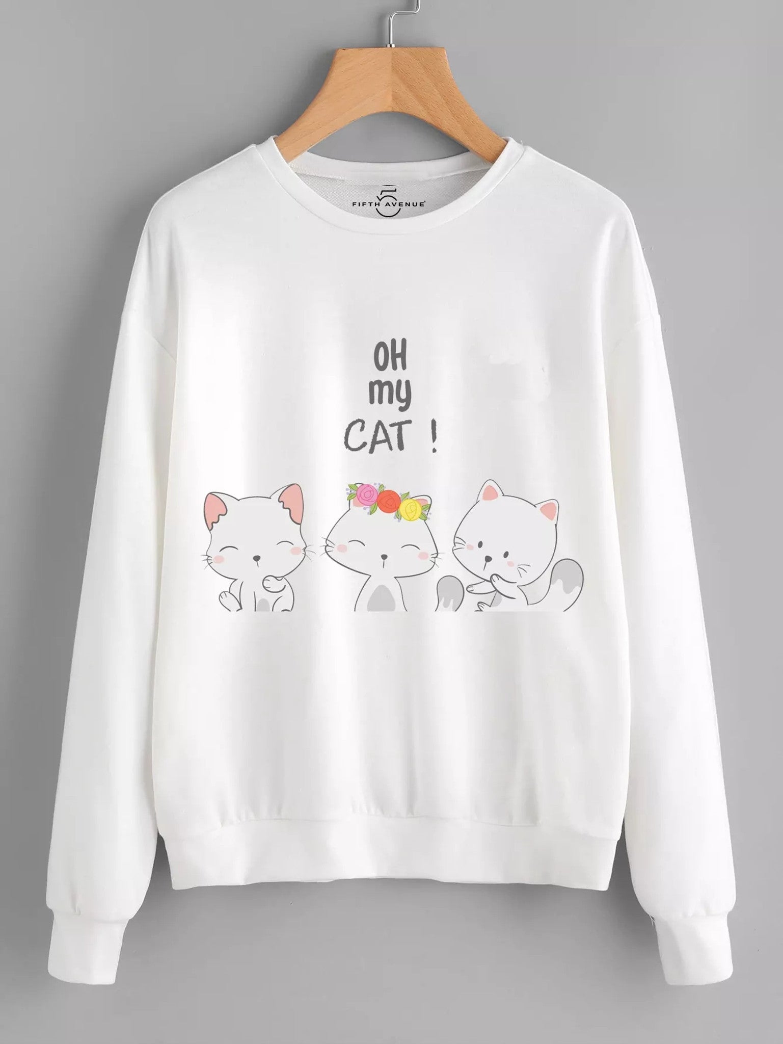 Fifth Avenue DIFT38 Oh My Cats Printed Sweatshirt - White