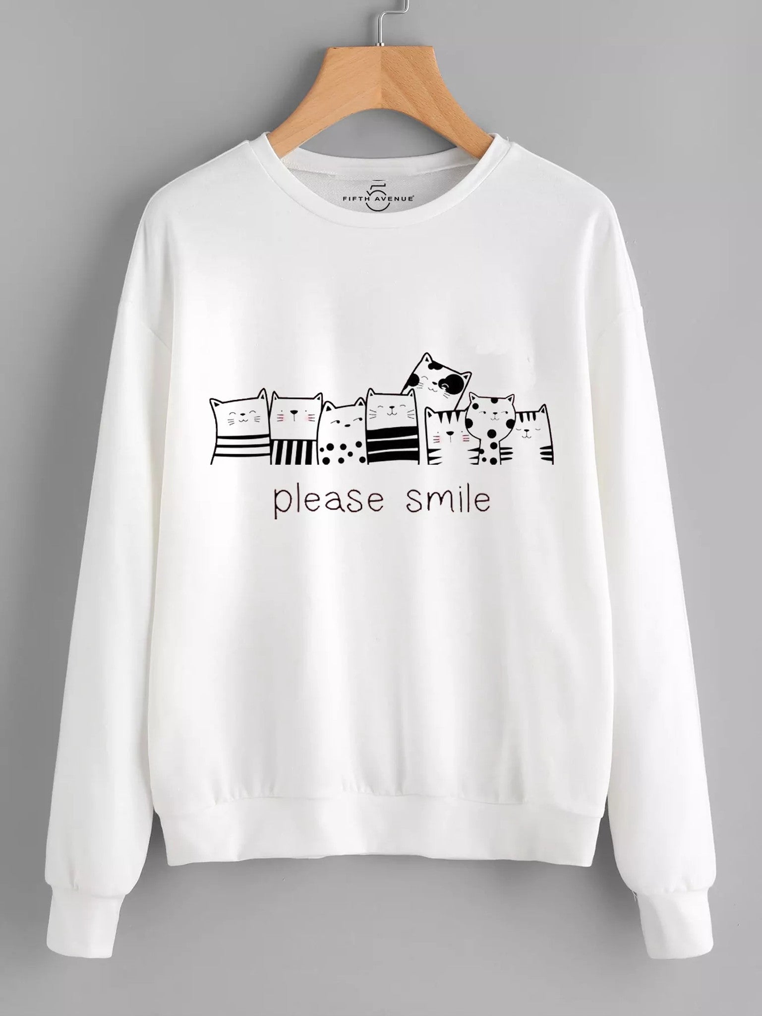 Fifth Avenue DIFT39 Cats Please Smile Printed Sweatshirt - White