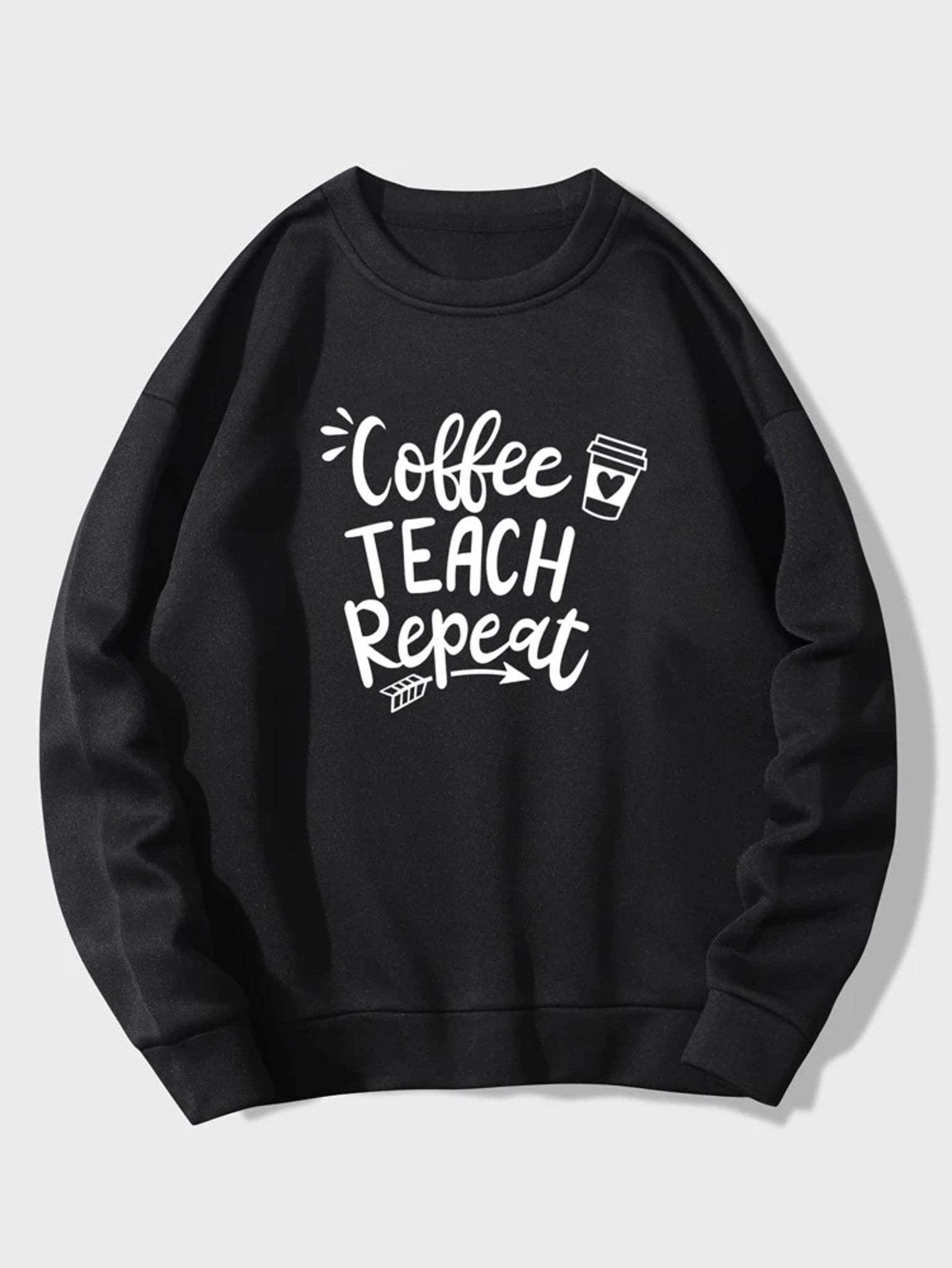 Fifth Avenue DIFT715 Coffee Teach Repeat Printed Sweatshirt - Black