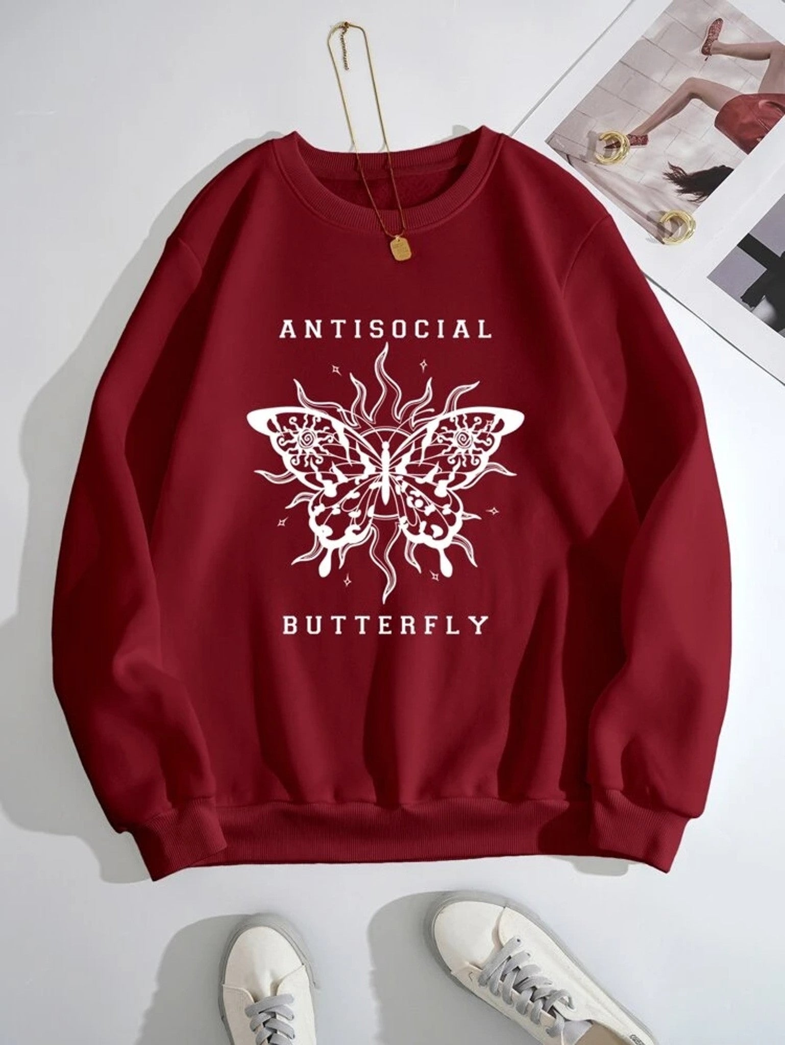 Fifth Avenue DIFT721 Anti Social Printed Sweatshirt - Maroon
