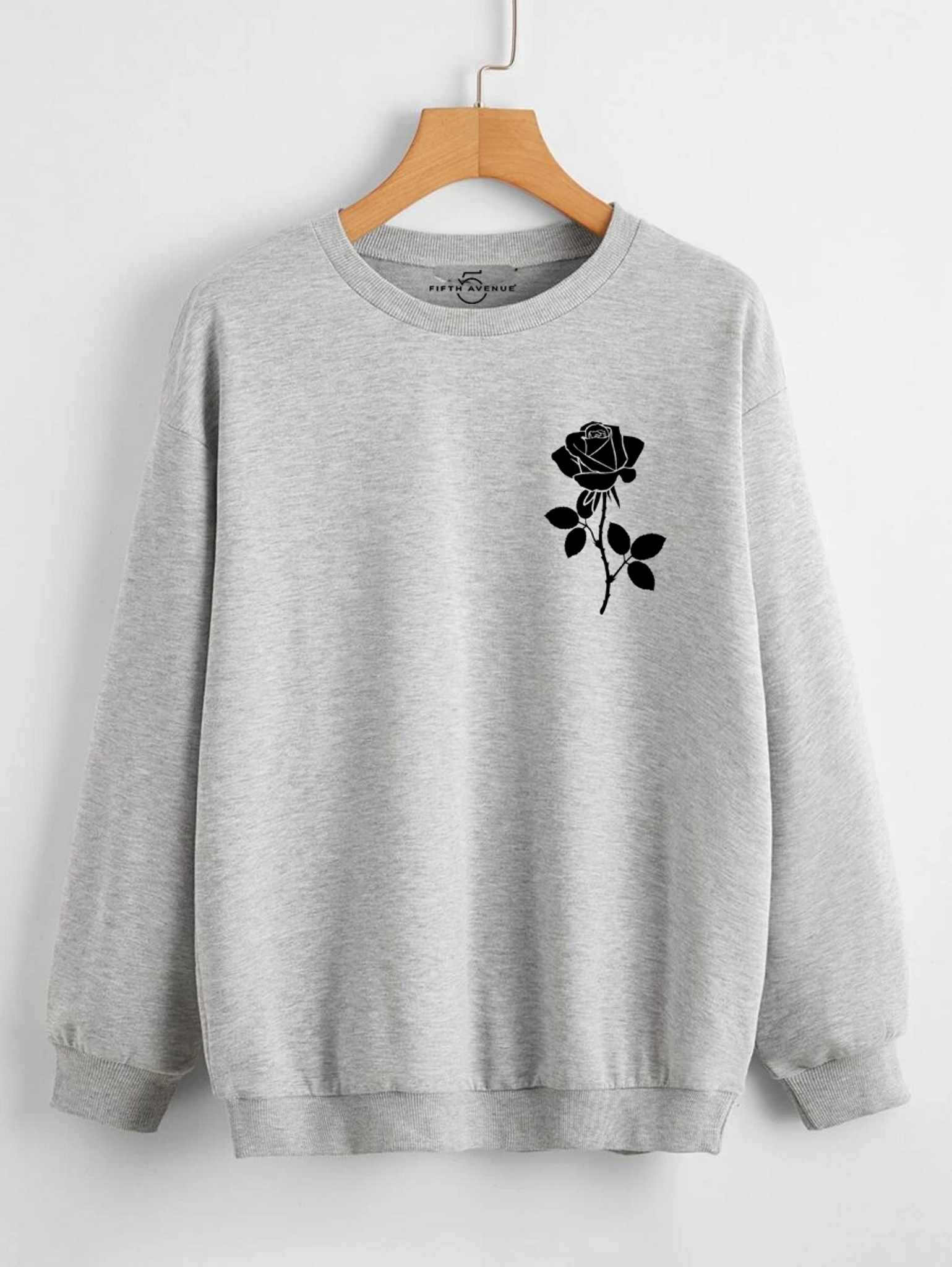 Fifth Avenue DIFT73 Rose Pocket Printed Sweatshirt - Grey