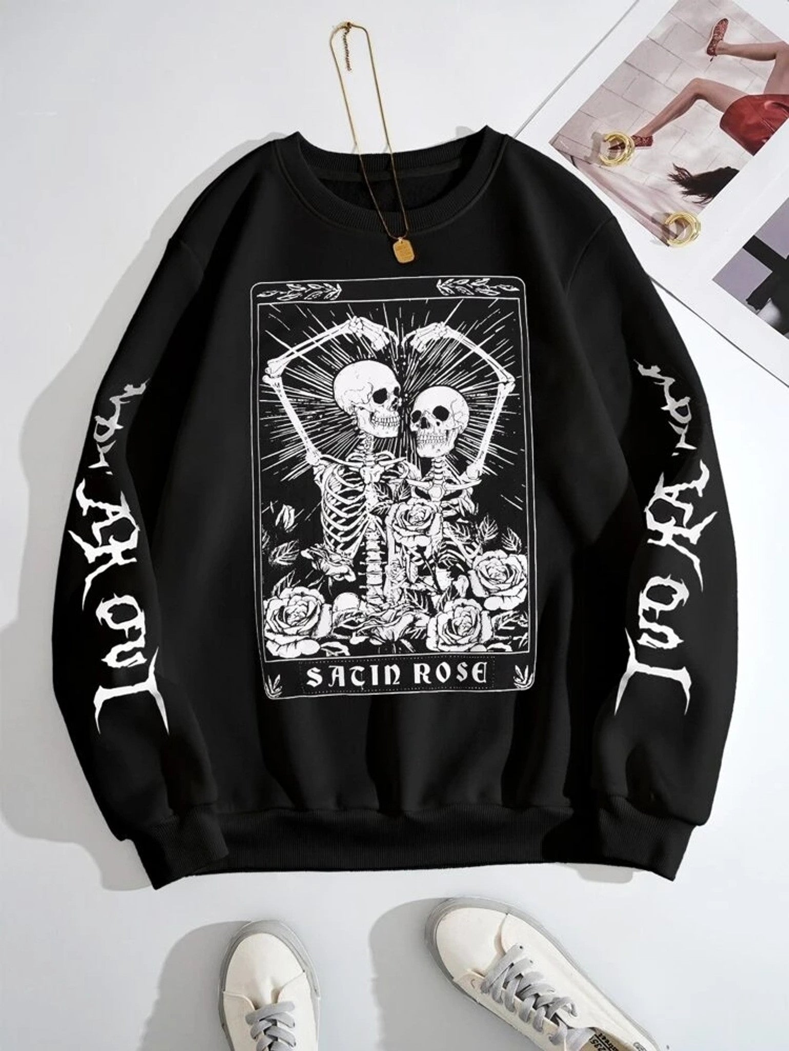 Fifth Avenue DIFT730 Skeleton Printed Sweatshirt - Black