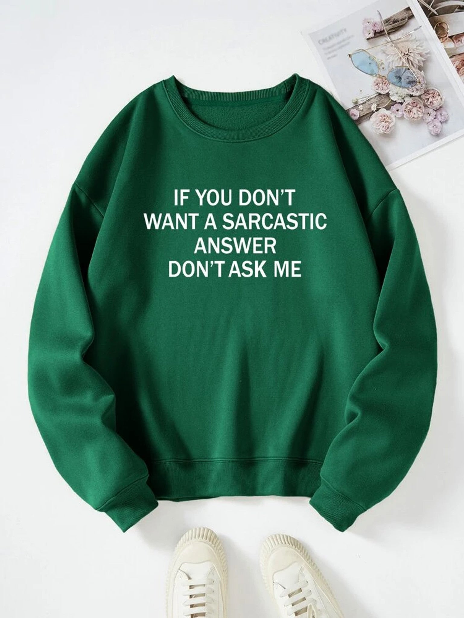 Fifth Avenue DIFT759 Don't Sarcastic Printed Sweatshirt - Green