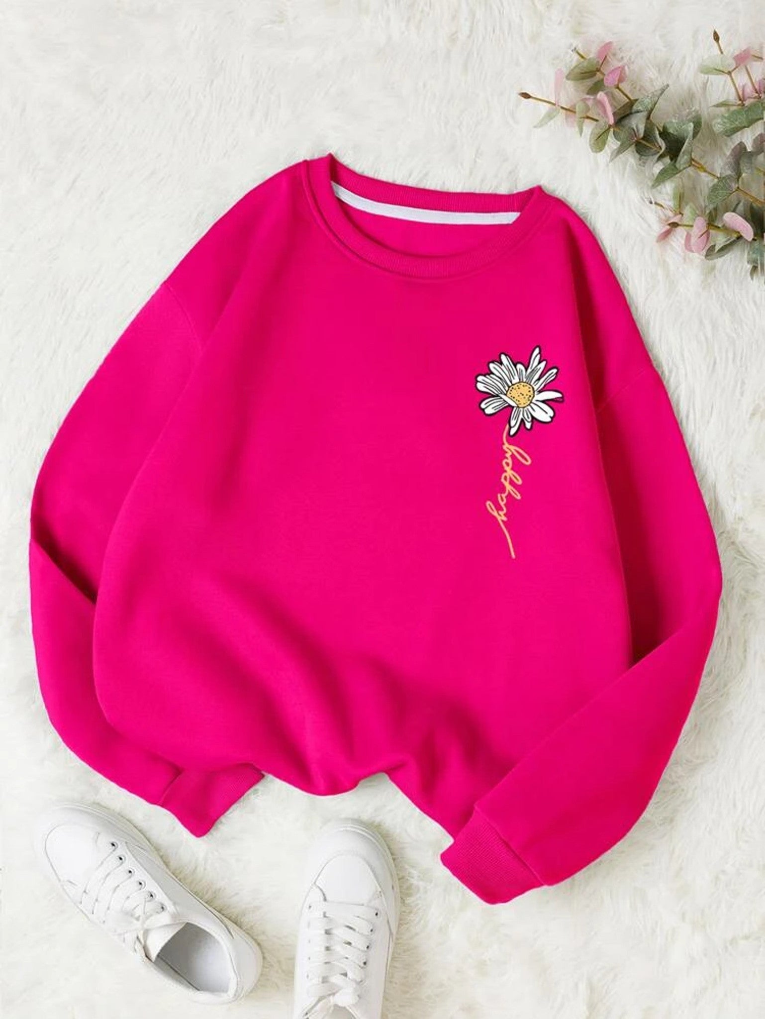 Fifth Avenue DIFT778 Floral Text Printed Sweatshirt - Pink