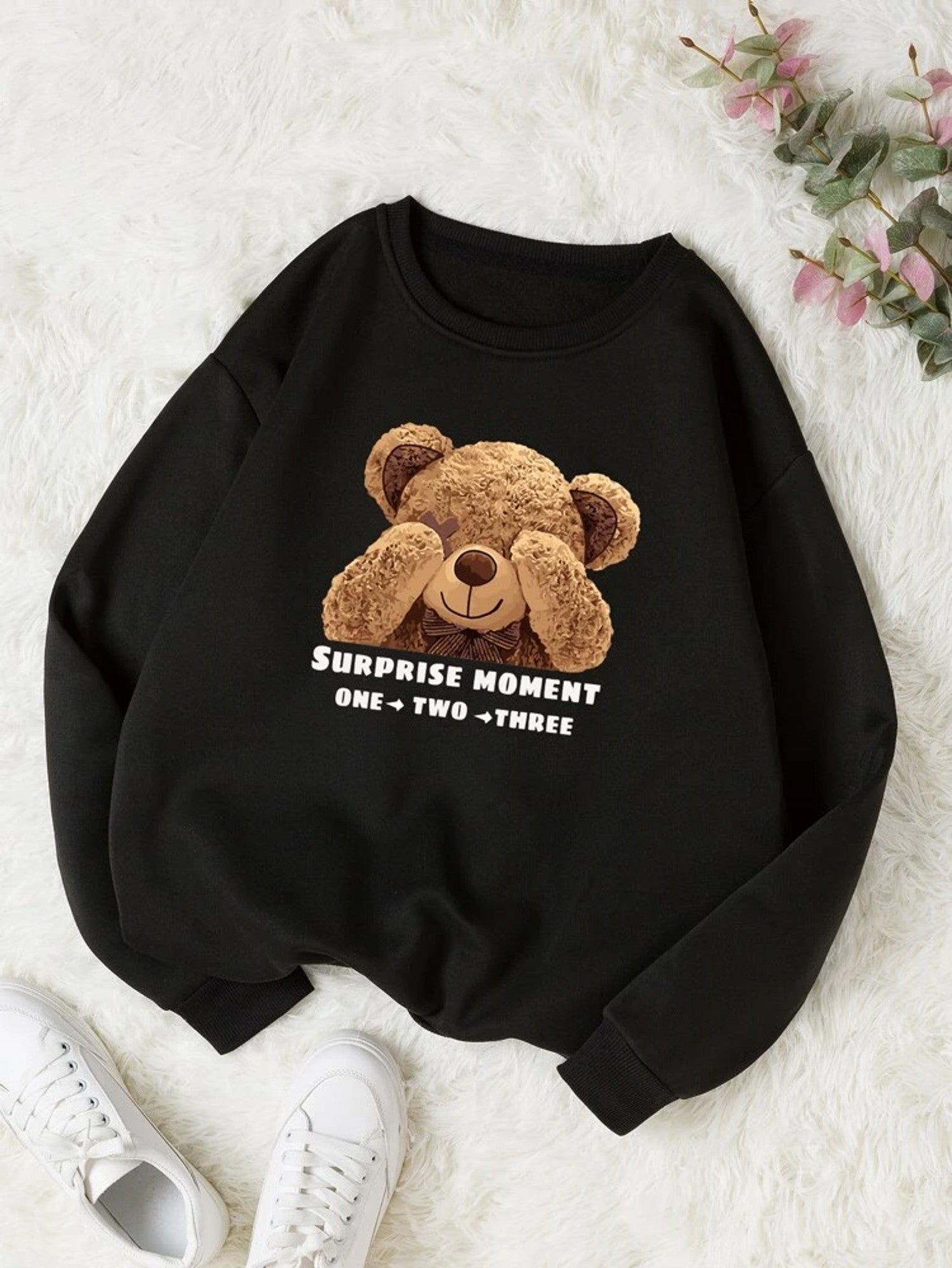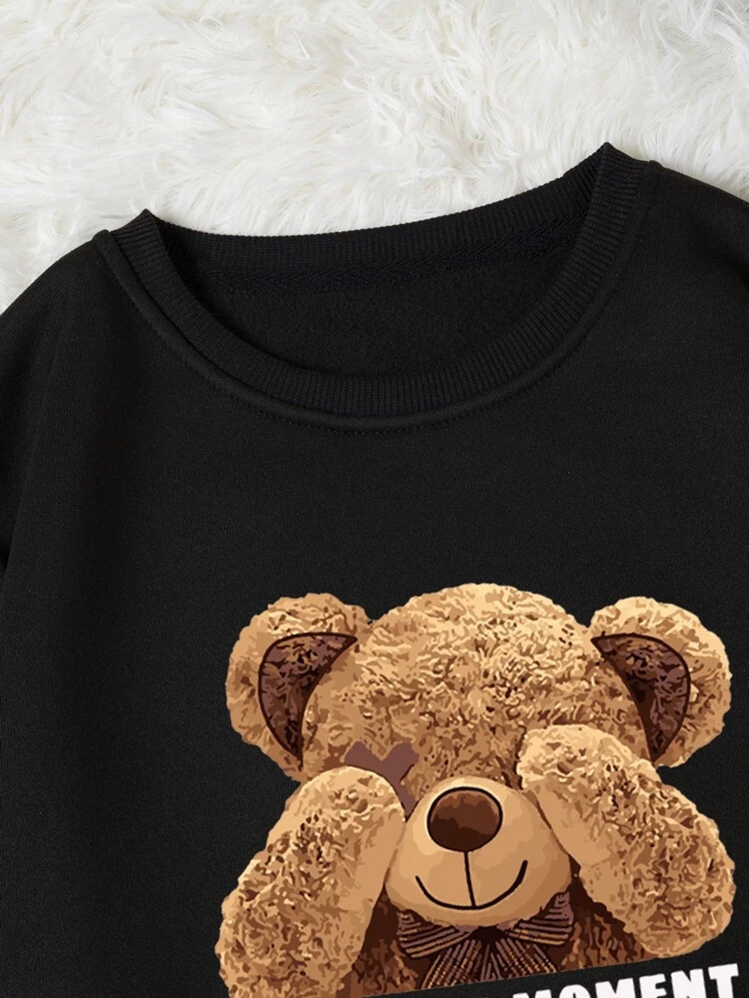 Fifth Avenue DIFT780 Bear Printed Sweatshirt - Black