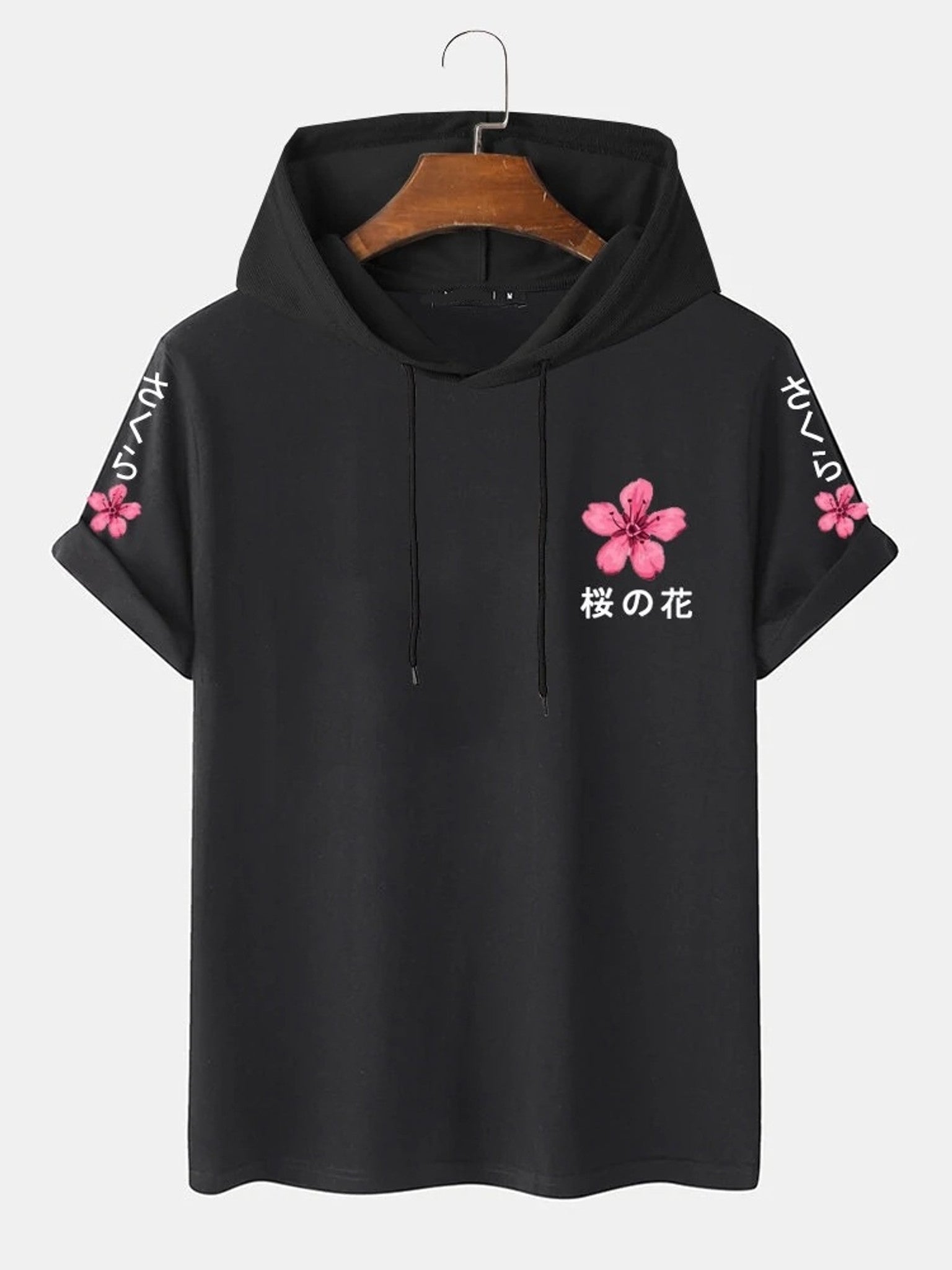 Fifth Avenue Floral Text Print MIFT439 Hooded ROKA T-Shirt - Black