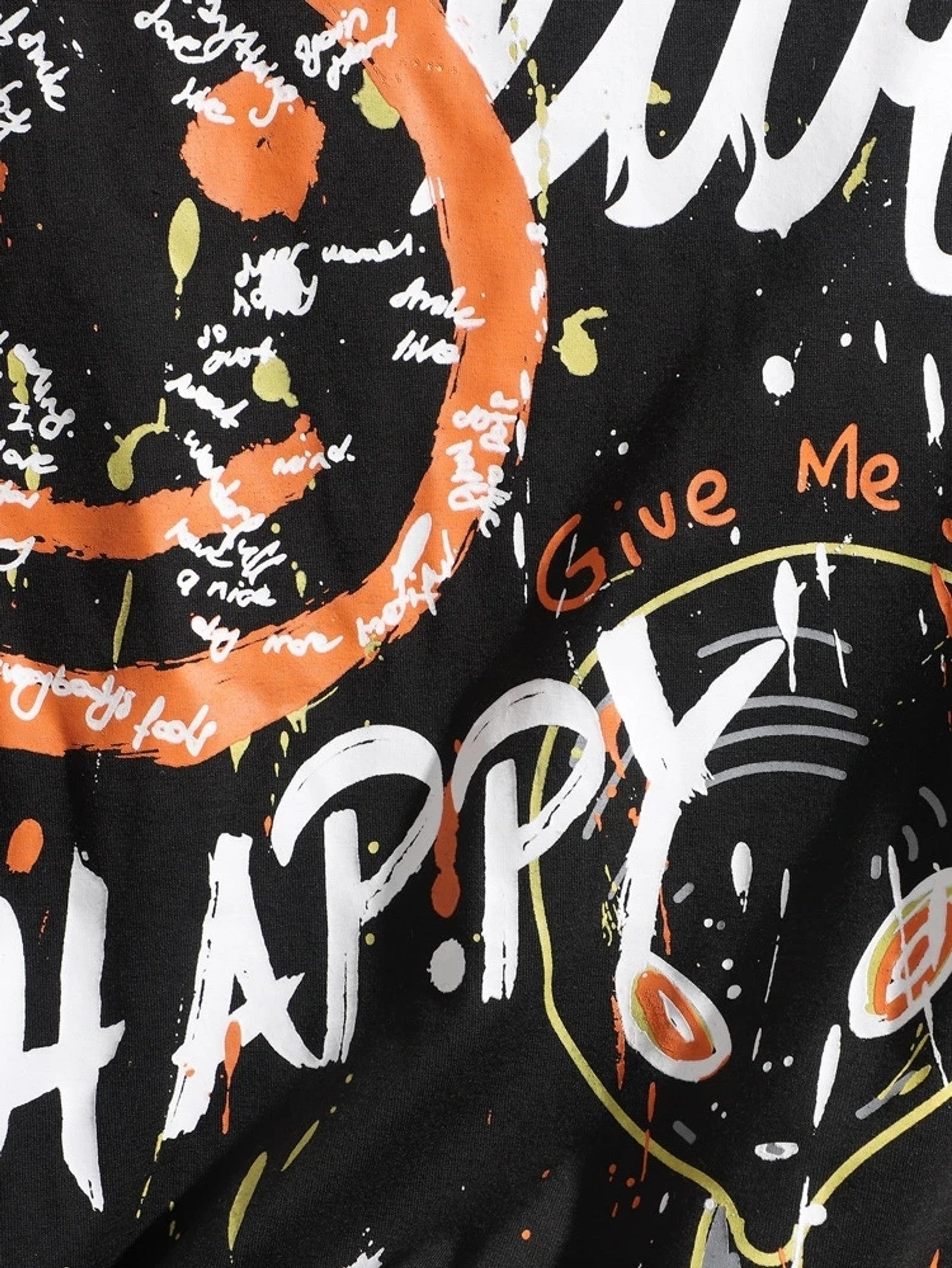 Fifth Avenue Front Back Paint Printed MIFT129 T-Shirt - Black