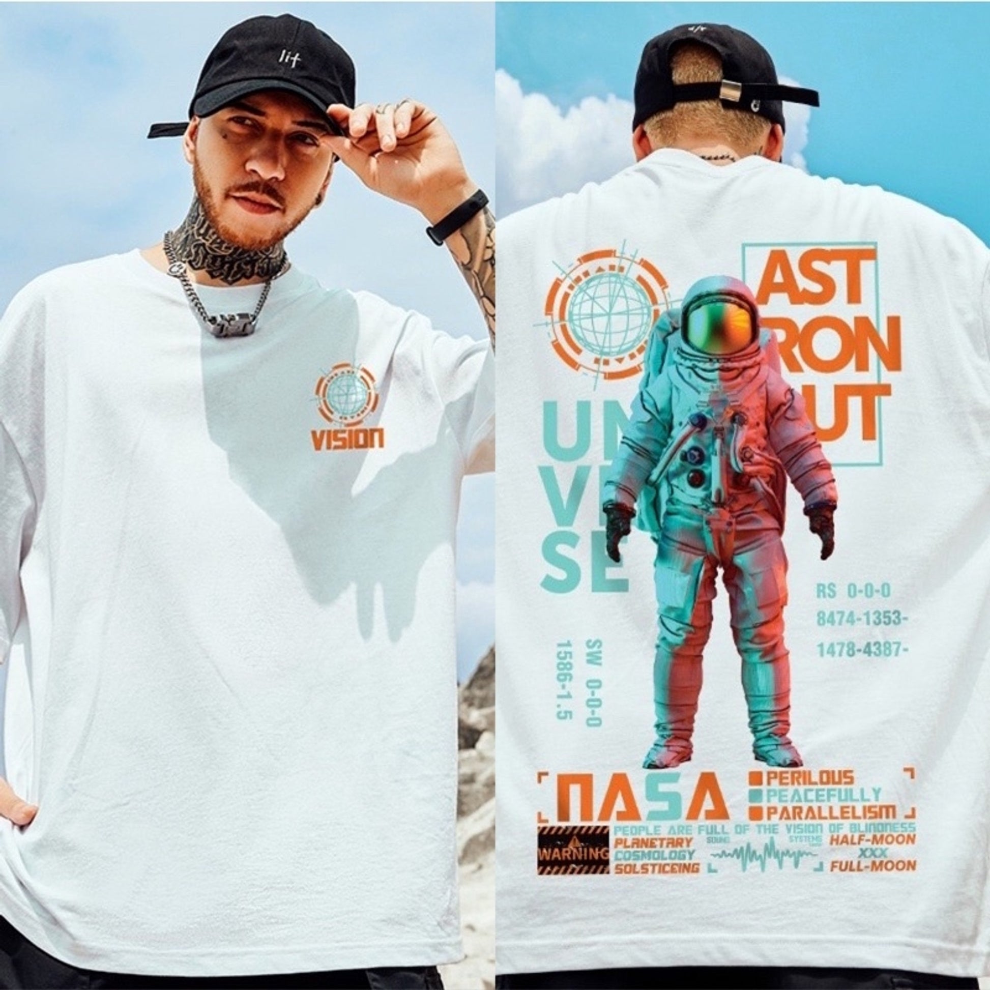 Fifth Avenue Front Back Space Printed MIFT186 T-Shirt - White