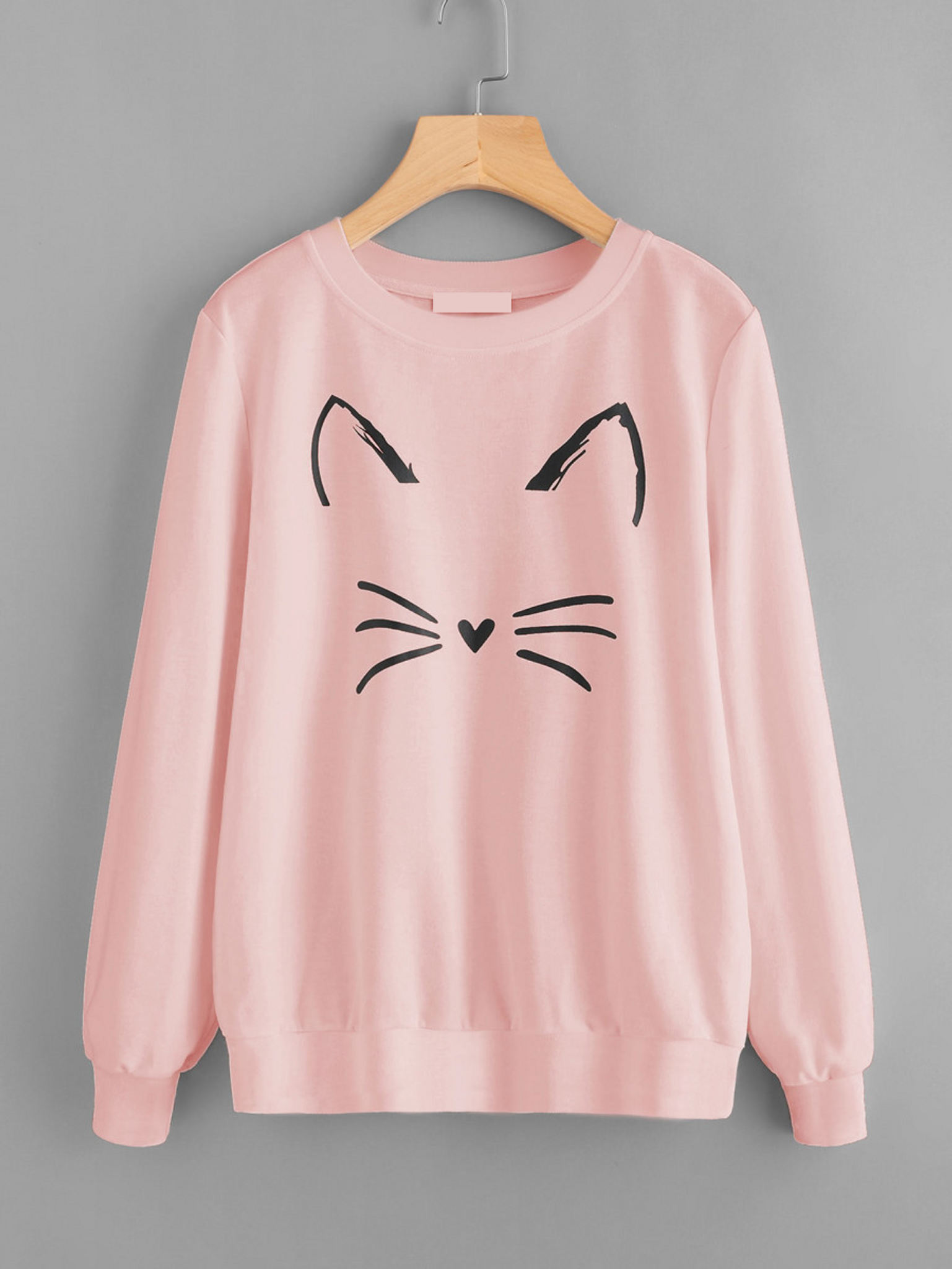 Fifth Avenue Happy Cat Printed Sweatshirt - Pink