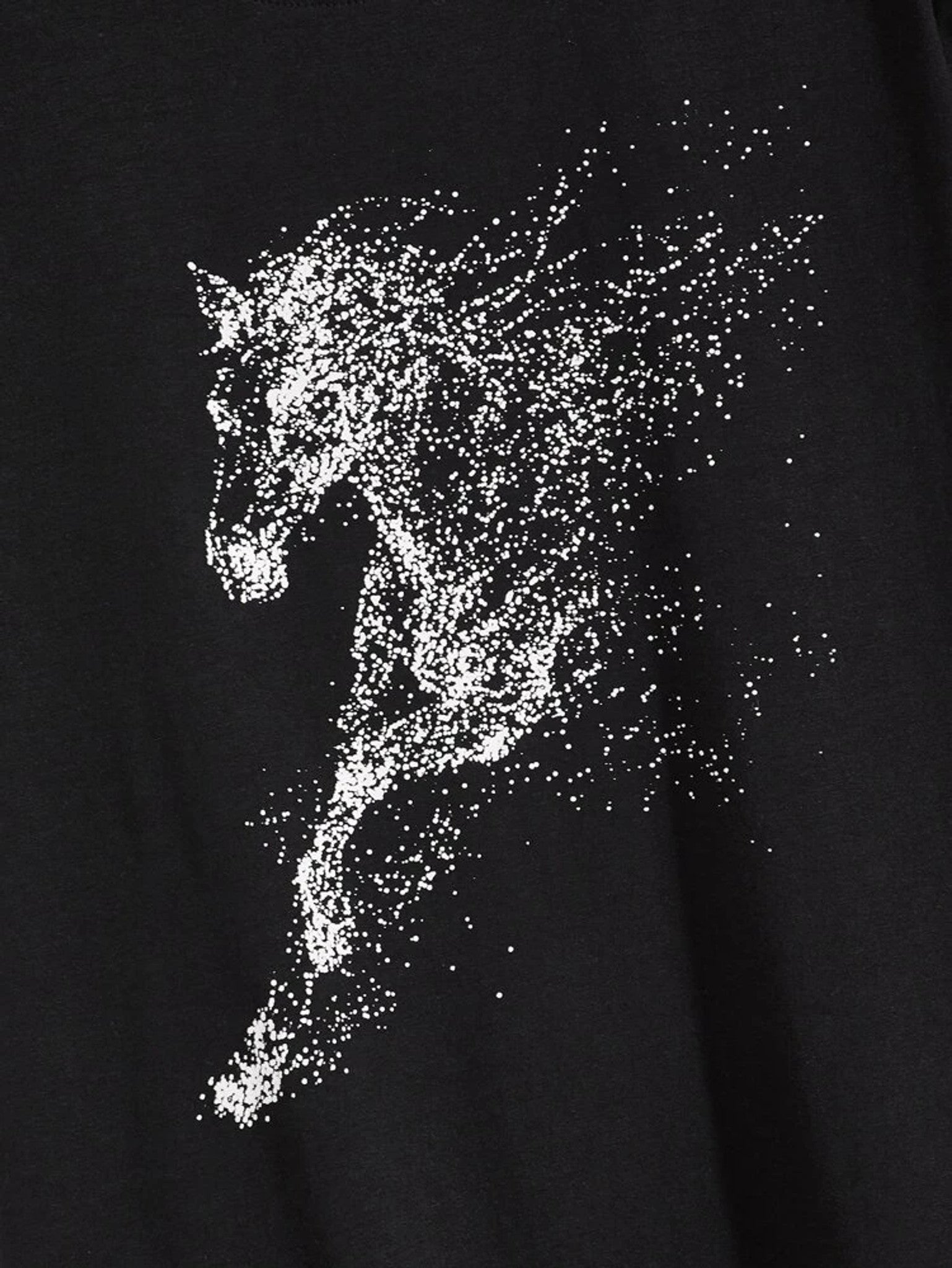 Fifth Avenue Horse Printed MIFT74 T-Shirt - Black