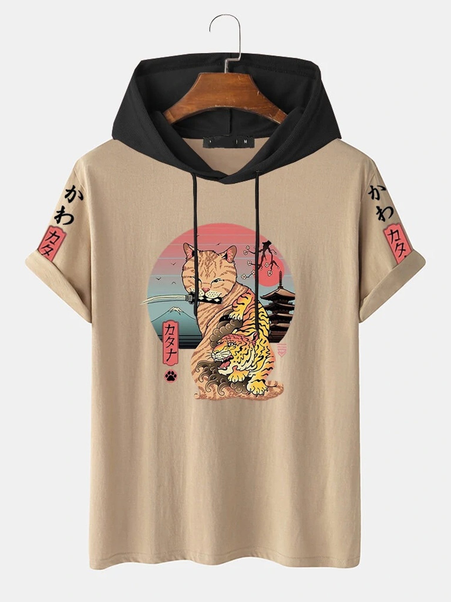 Fifth Avenue Japanese Cat Print MIFT424 Hooded ROKA T-Shirt - Cream Black