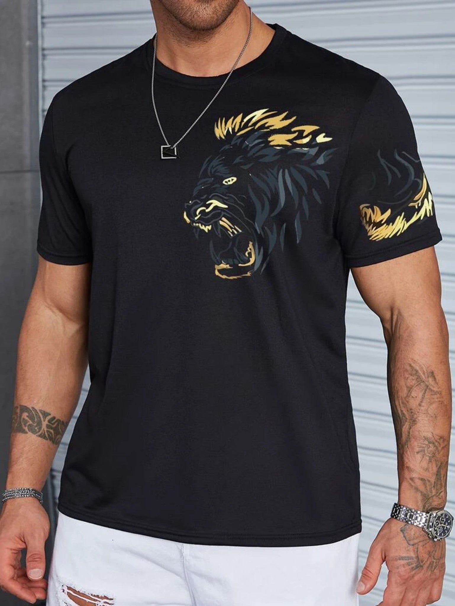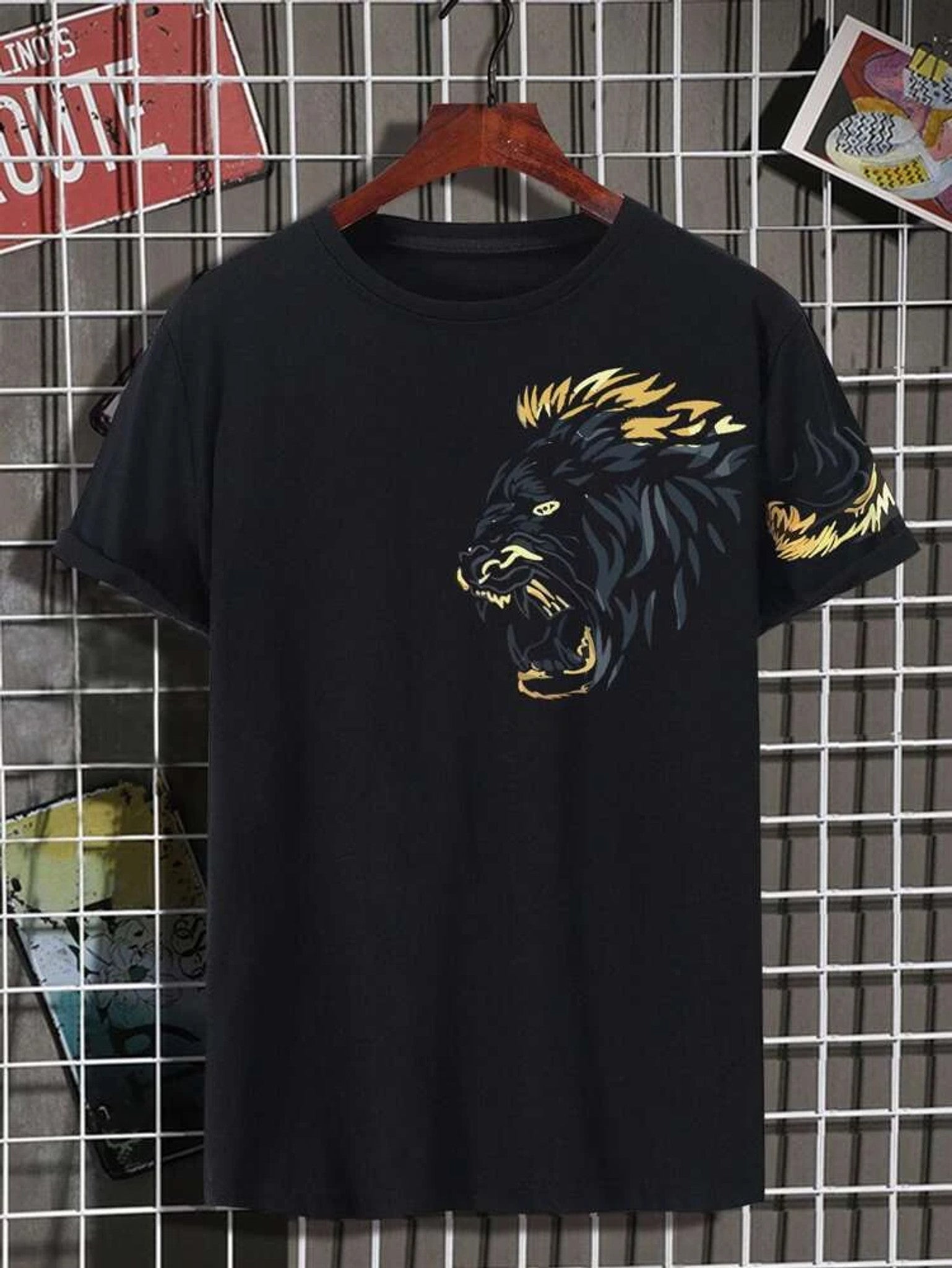 Fifth Avenue Lion Printed MIFT402 T-Shirt - Black