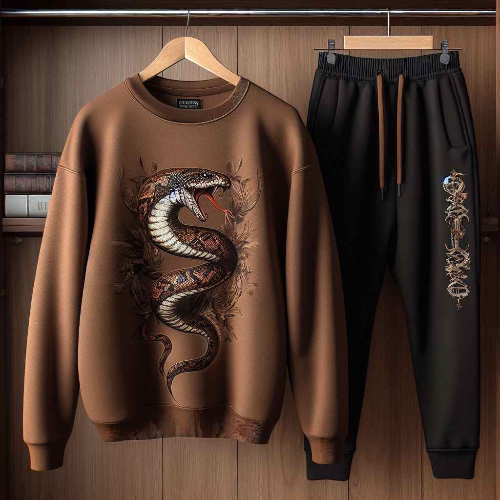 Fifth Avenue Mens Sweatshirt and Pants Set FAWMSPS43 - Brown Black