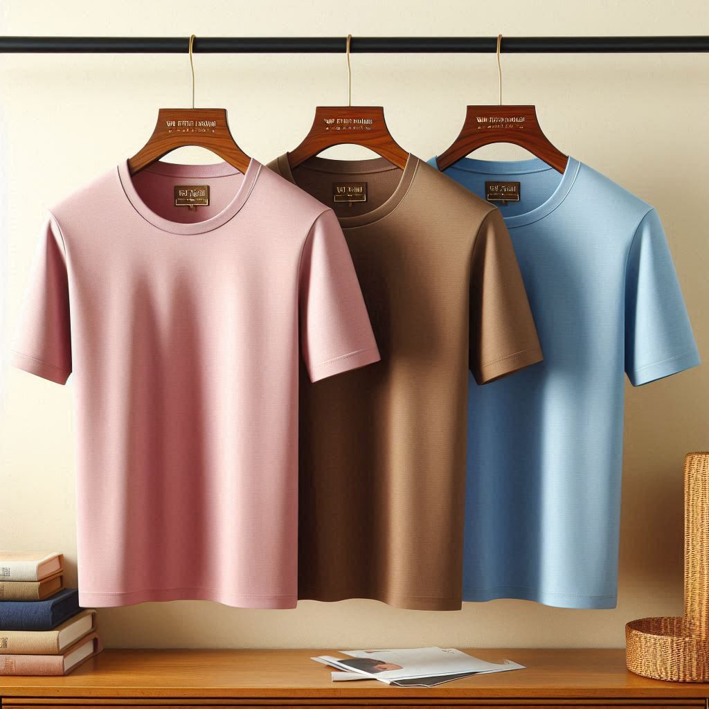 This bundle includes 3 cotton rich t-shirts. In this bundle all 3 t-shirts are brown, pink and light blue.