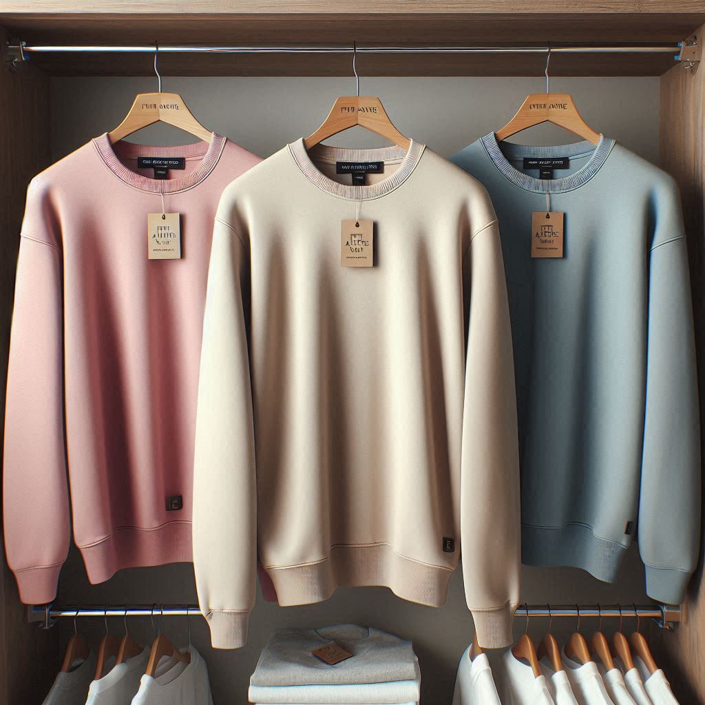 This bundle includes 3 fleece sweatshirtds. In this bundle the 3 sweatshirts are cream, pink and light blue.