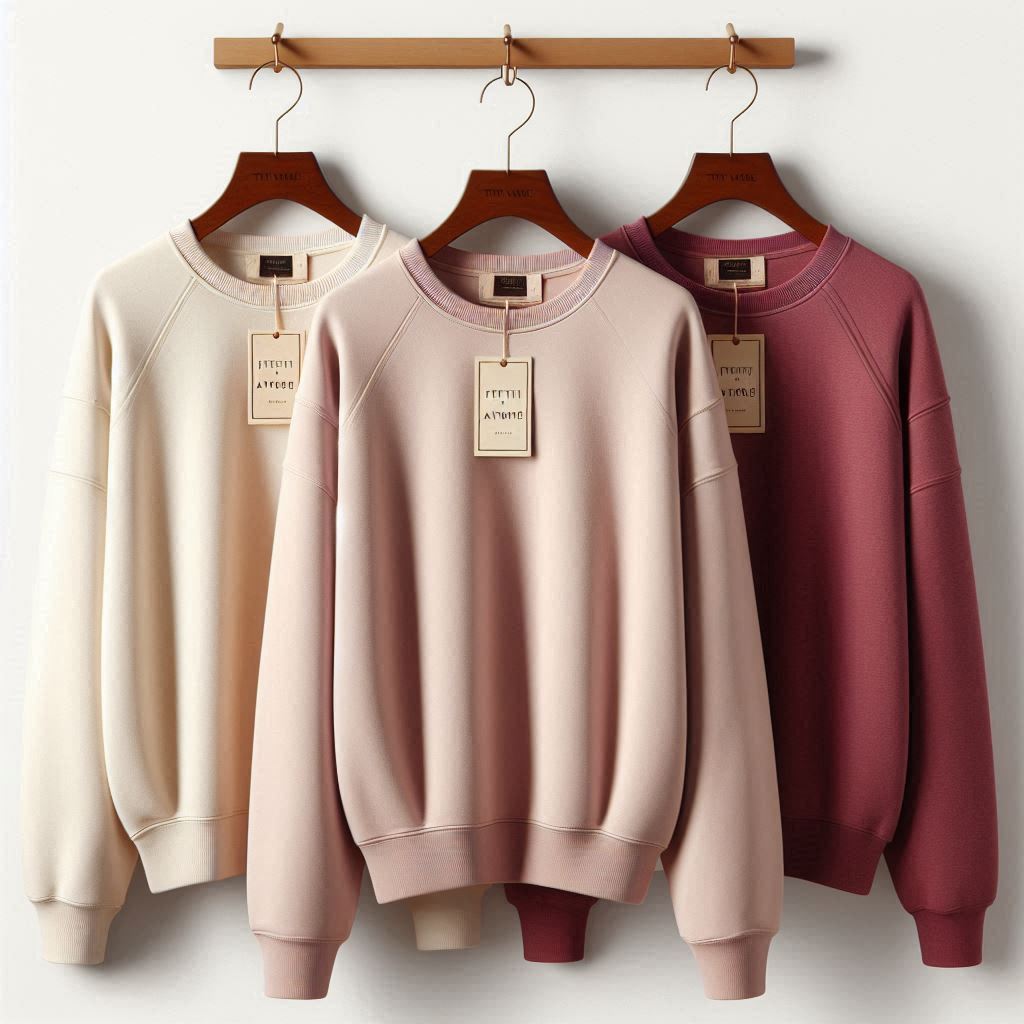This bundle includes 3 fleece sweatshirtds. In this bundle the 3 sweatshirts are cream, pink and maroon.