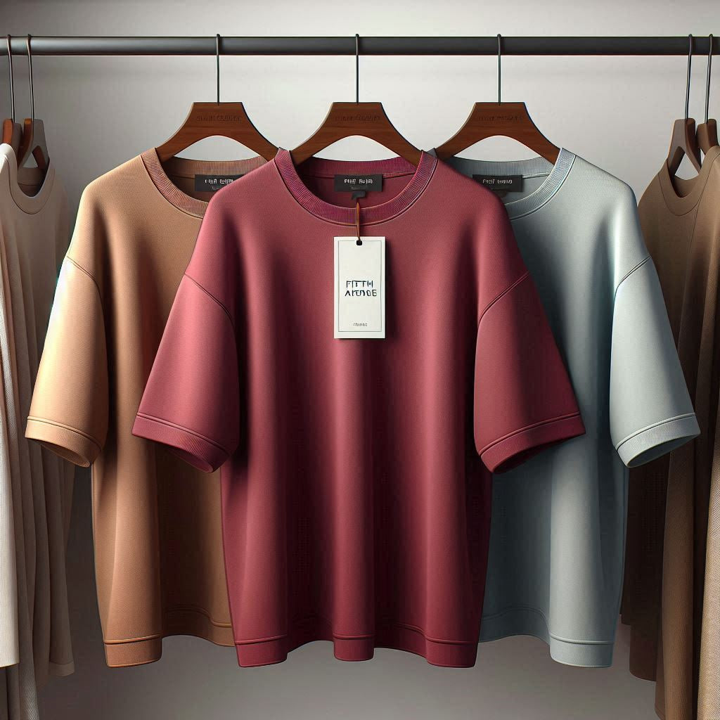 Fifth Avenue Pack of 3 Womens Plain Drop Shoulder Oversized Light Blue Maroon Brown T-Shirts FAWNDSO6