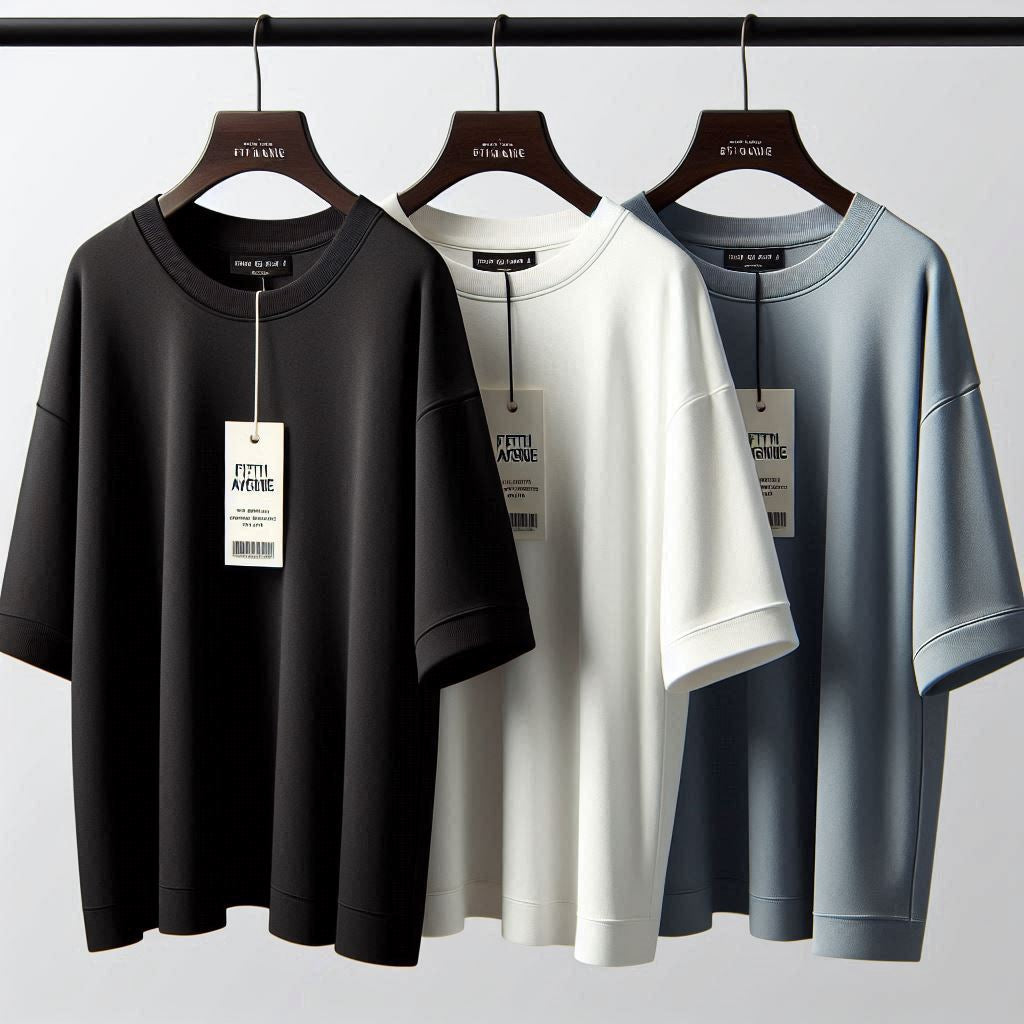Fifth Avenue Pack of 3 Womens Plain Drop Shoulder Oversized Light Blue White Black T-Shirts FAWNDSO2