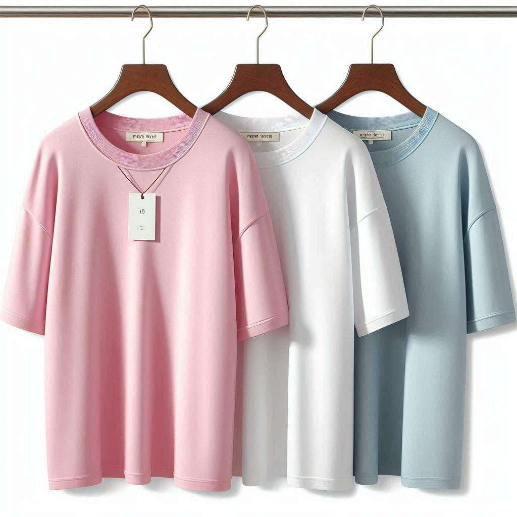 This bundle includes 3 cotton rich t-shirts. In this bundle all 3 t-shirts are light blue, white and pink.