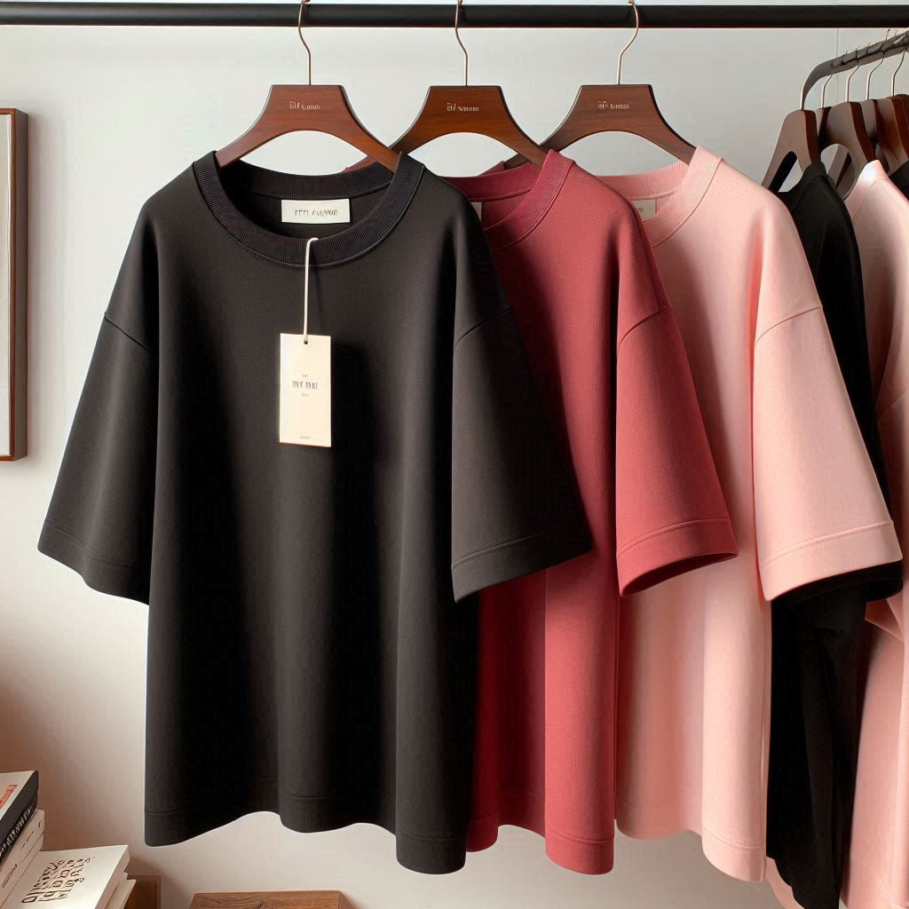 Fifth Avenue Pack of 3 Womens Plain Drop Shoulder Oversized Maroon Pink Black T-Shirts FAWNDSO3