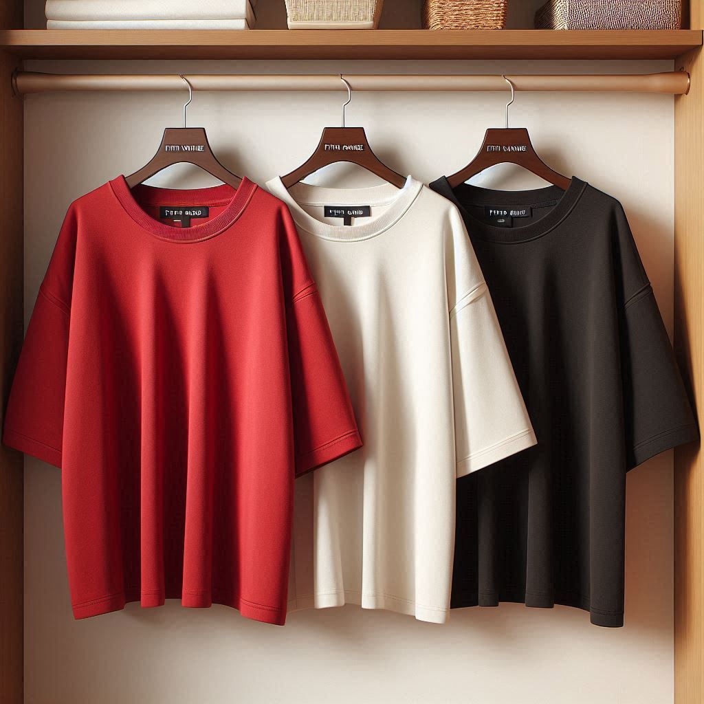 Fifth Avenue Pack of 3 Womens Plain Drop Shoulder Oversized Red White Black T-Shirts FAWNDSO8