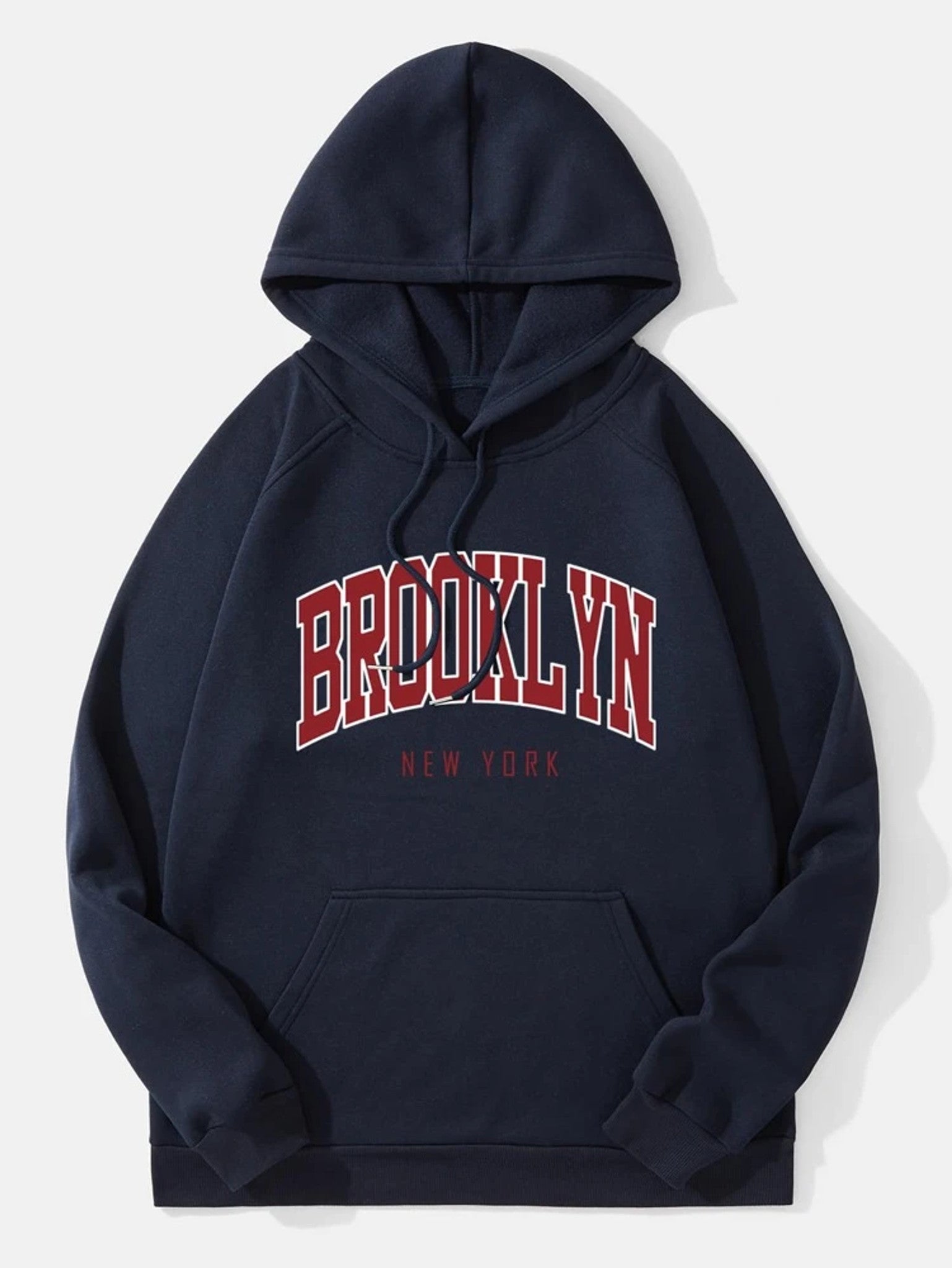 Fifth Avenue Printed Kangaroo Hoodie MIFT268 - Navy Blue