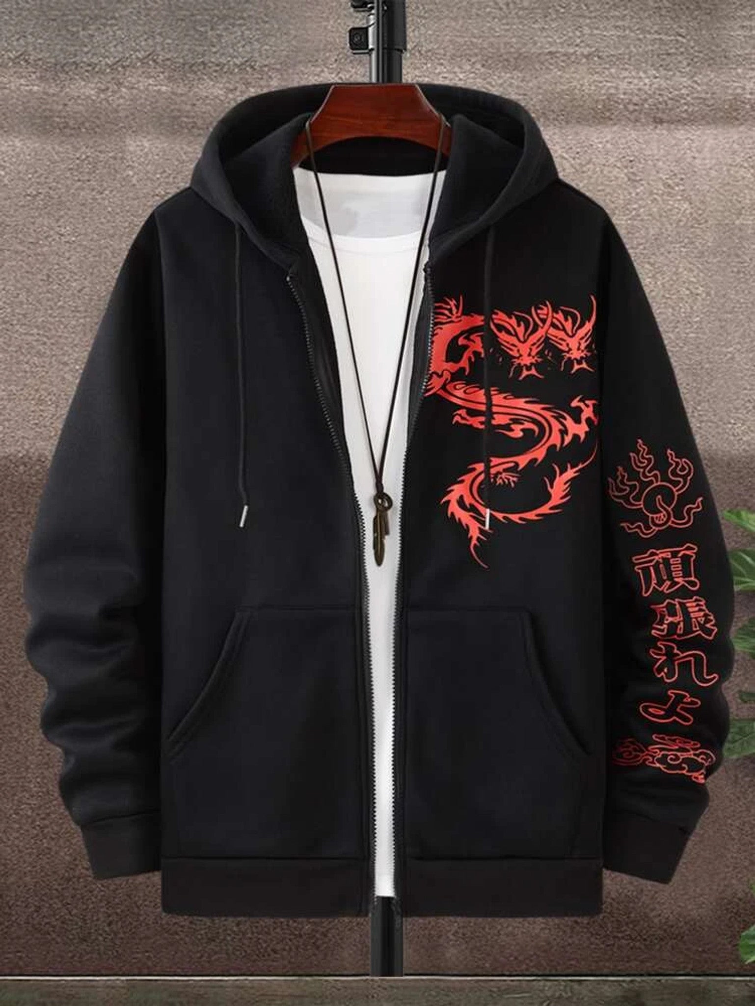 Fifth Avenue Printed Zip Hoodie MIFT274 - Black