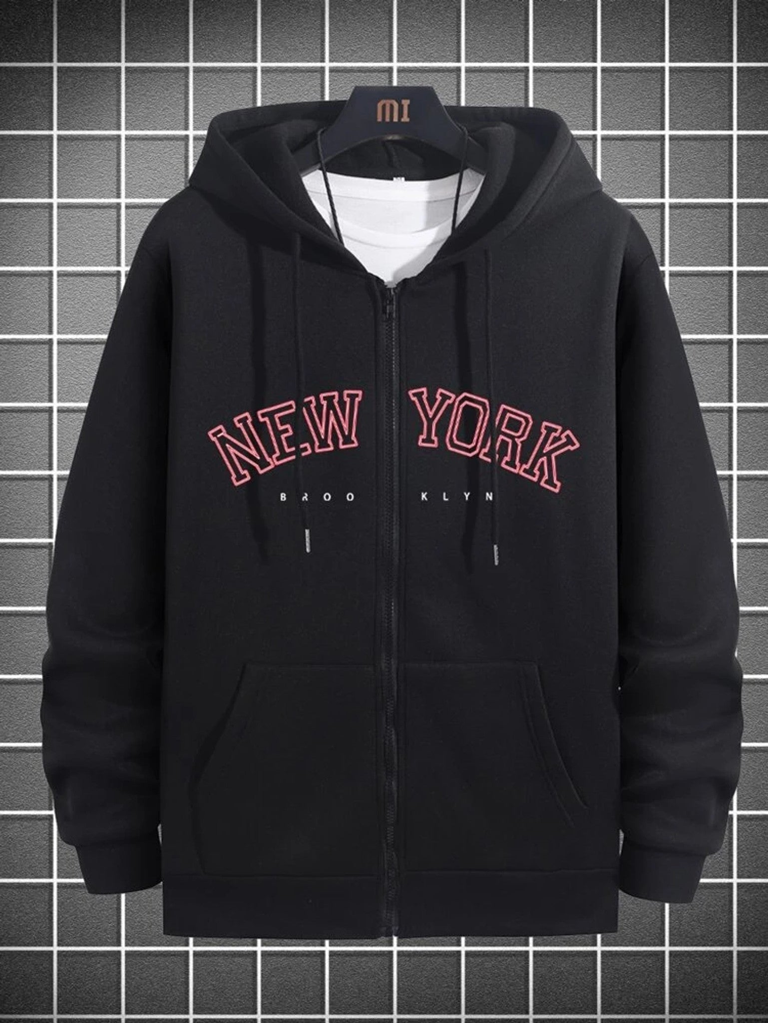Fifth Avenue Printed Zip Hoodie MIFT275 - Black