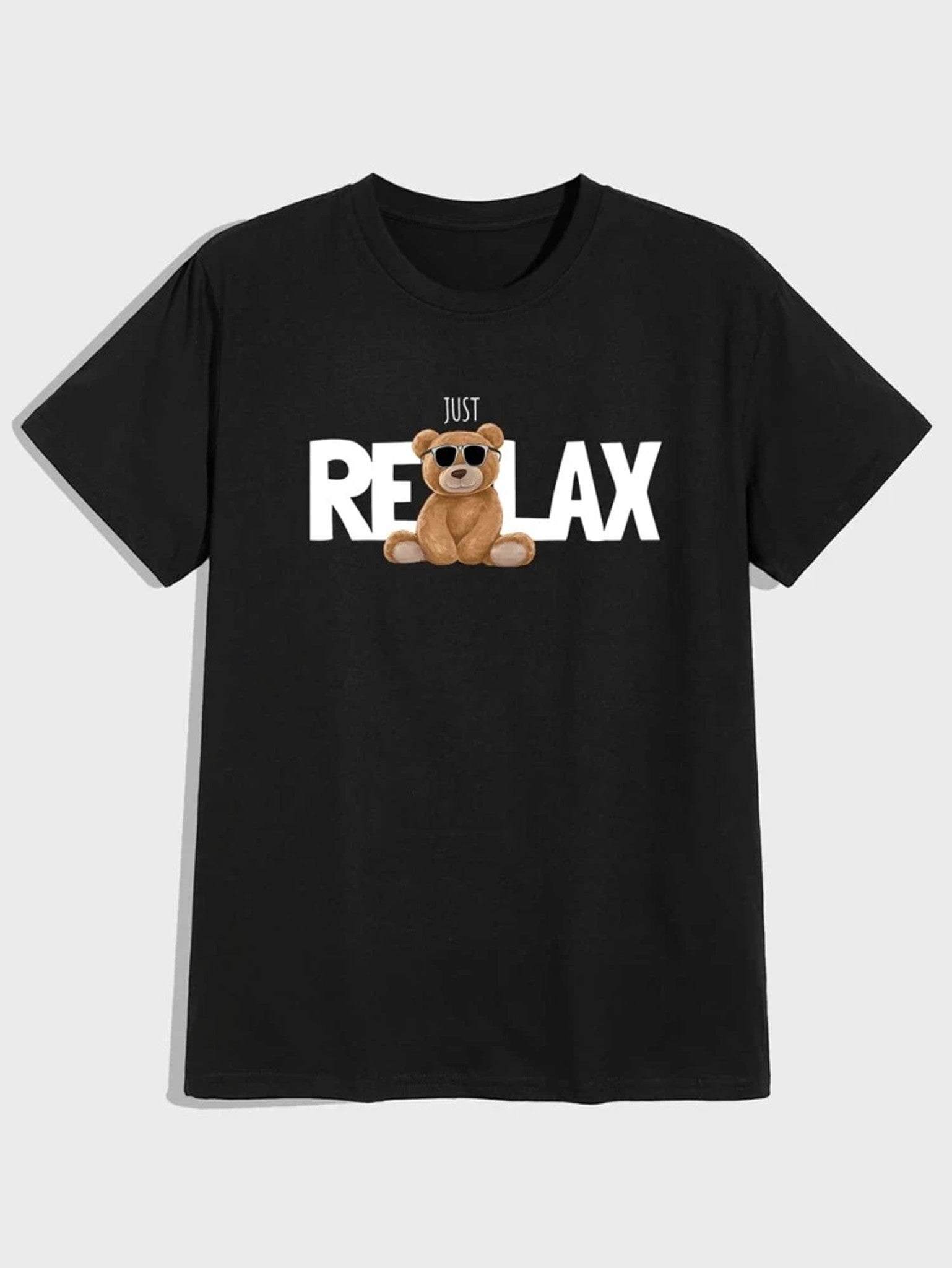 Fifth Avenue Relax Bear Printed MIFT33 T-Shirt - Black