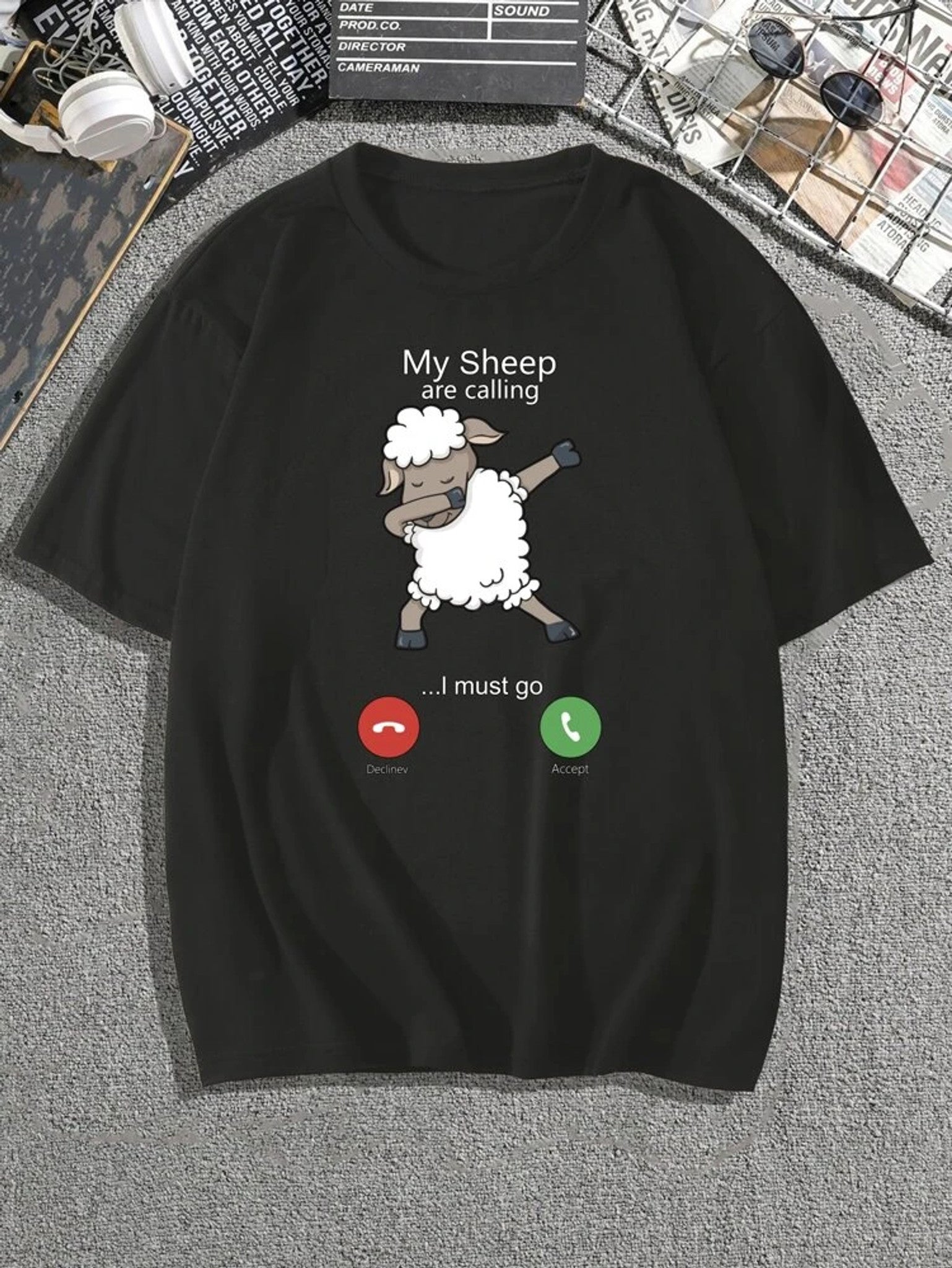 Fifth Avenue Sheep Calling Printed MIFT155 T-Shirt - Black