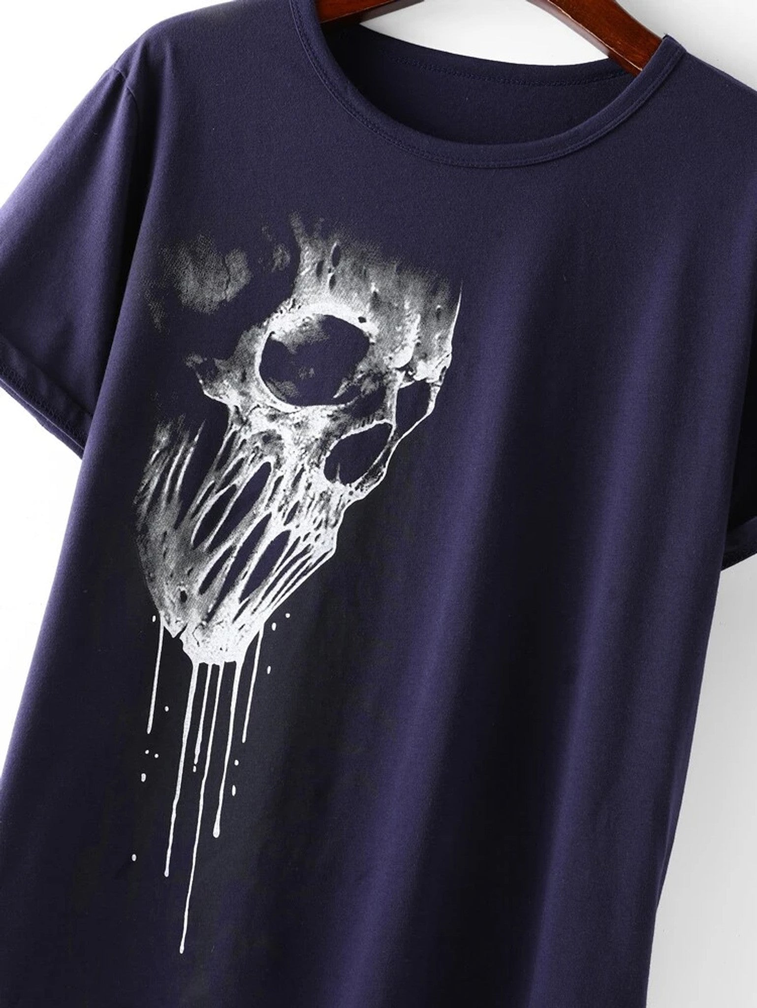 Fifth Avenue Skull Printed MIFT157 T-Shirt - Navy Blue