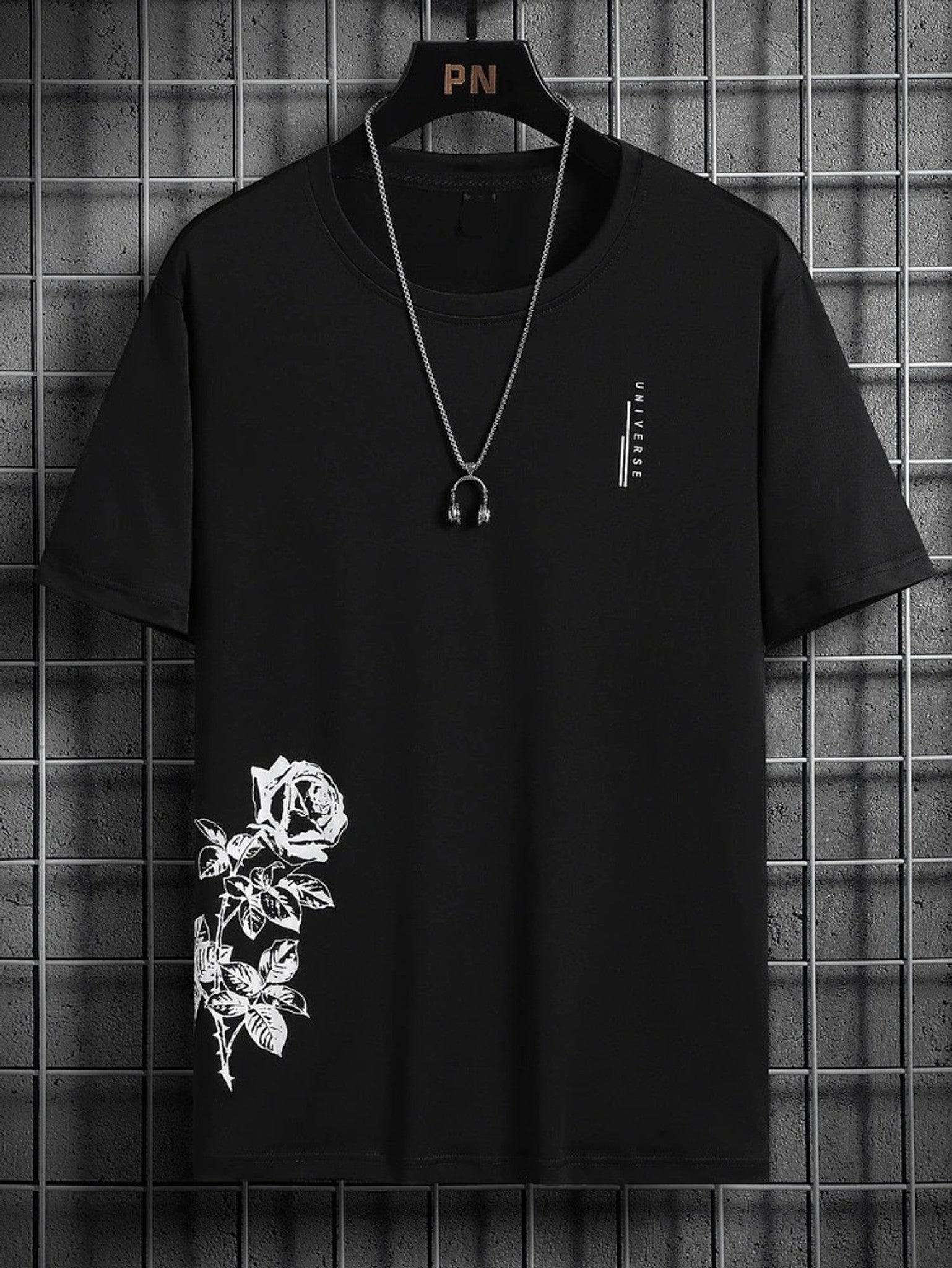 Fifth Avenue Text Floral Printed MIFT390 T-Shirt - Black