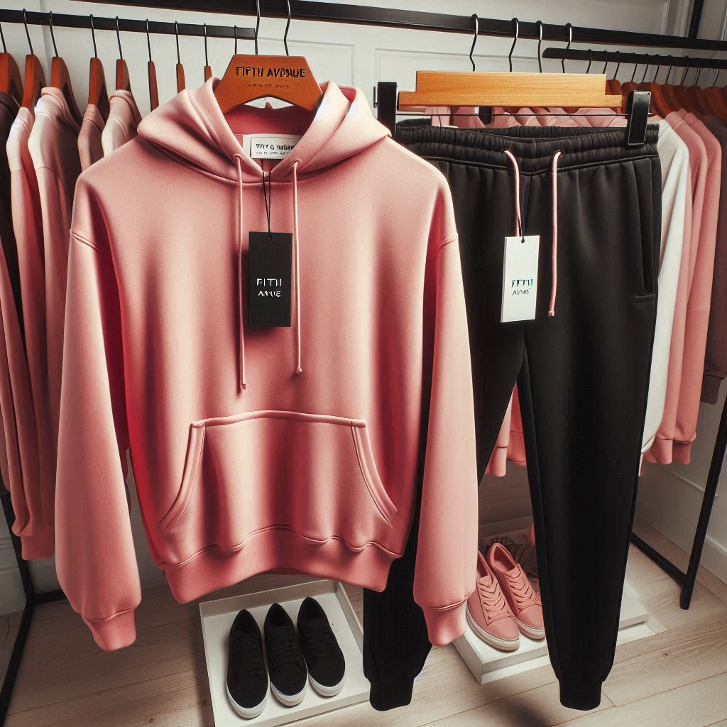 Fifth Avenue Womens Plain Hoodie and Pants Set FAWPHPS1 - Pink Black
