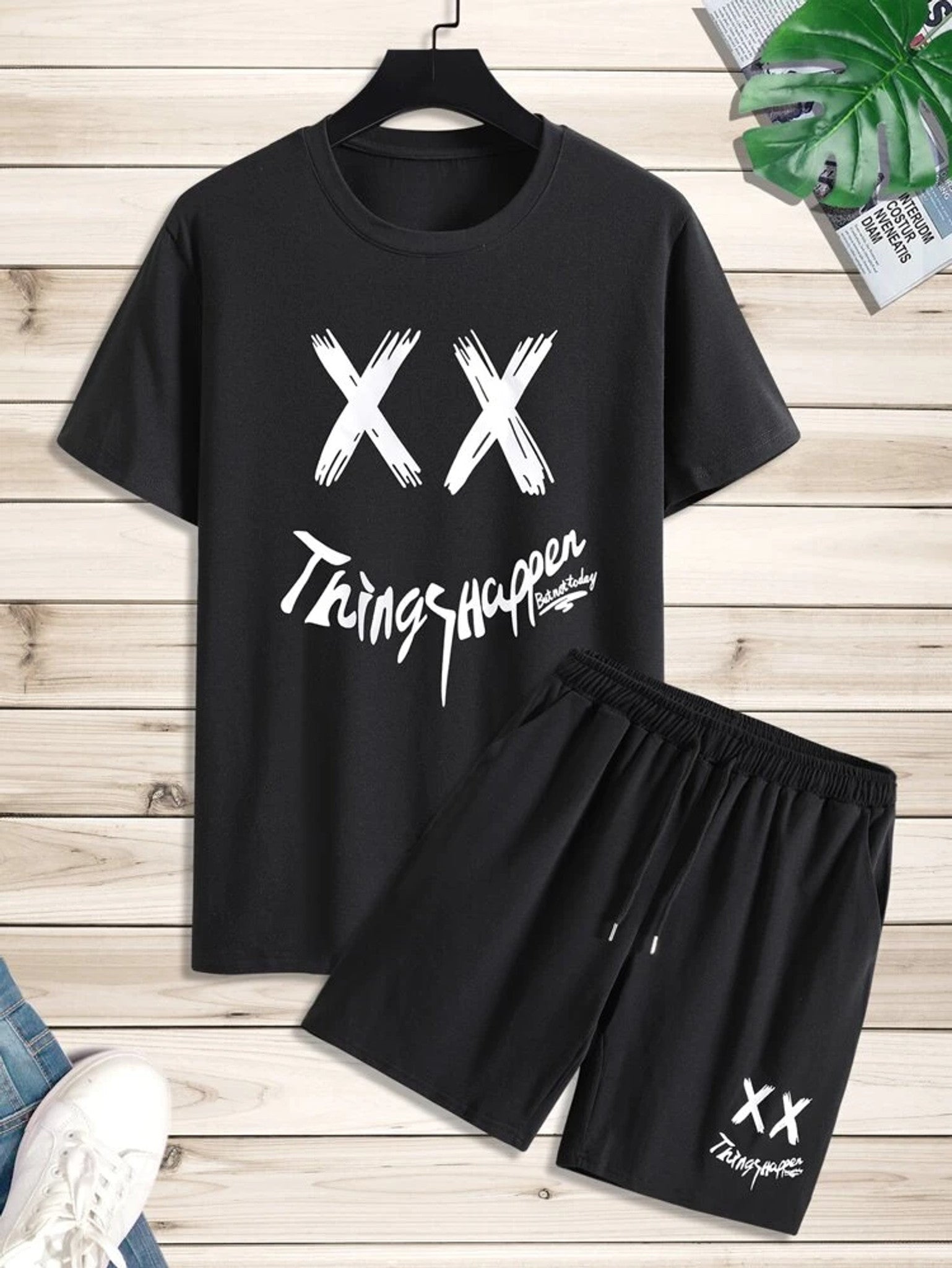 This set is made of cotton rich fabric. It includes a tshirt and shorts.