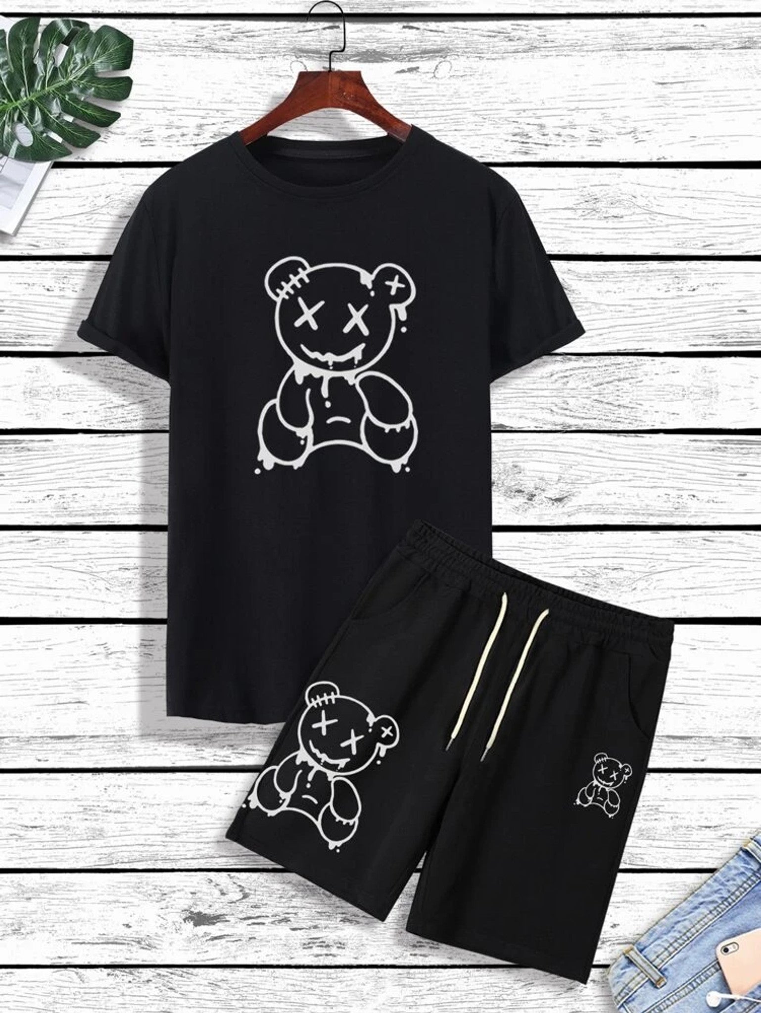 This set is made of cotton rich fabric. It includes a tshirt and shorts.
