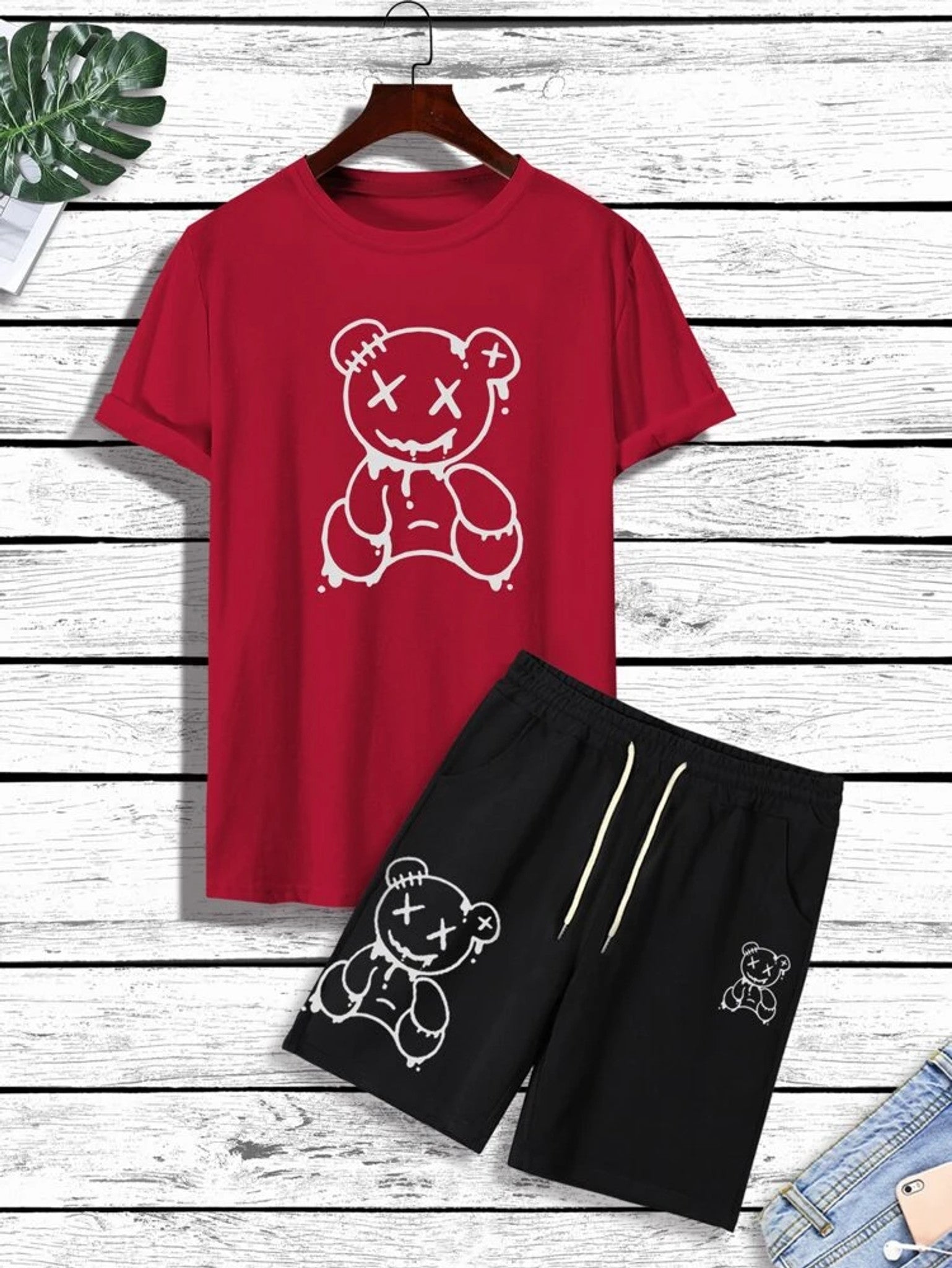This set is made of cotton rich fabric. It includes a tshirt and shorts.