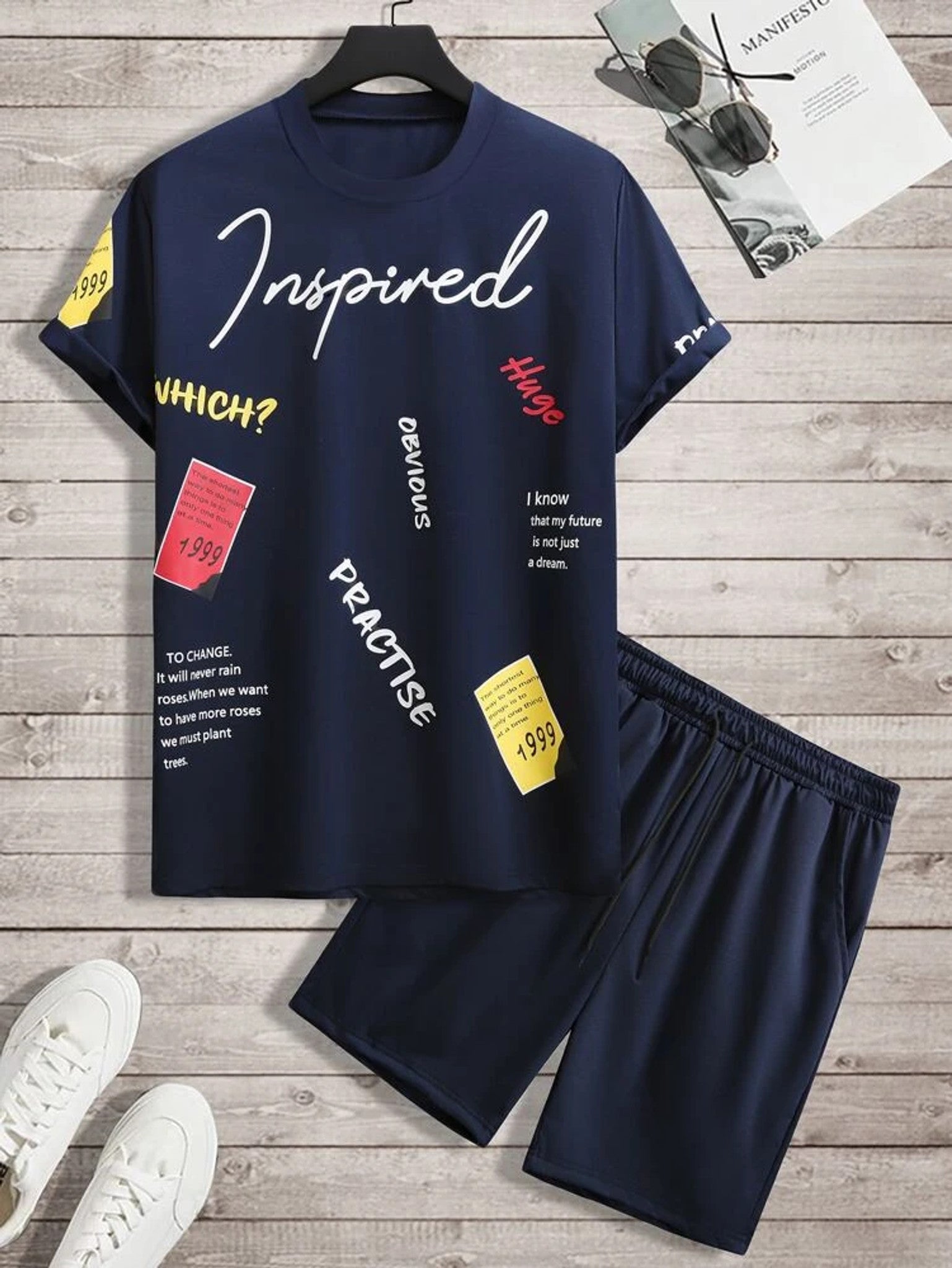 Mens Summer Printed Co Ord Set by Fifth Avenue MSFACSS21 - Navy Blue